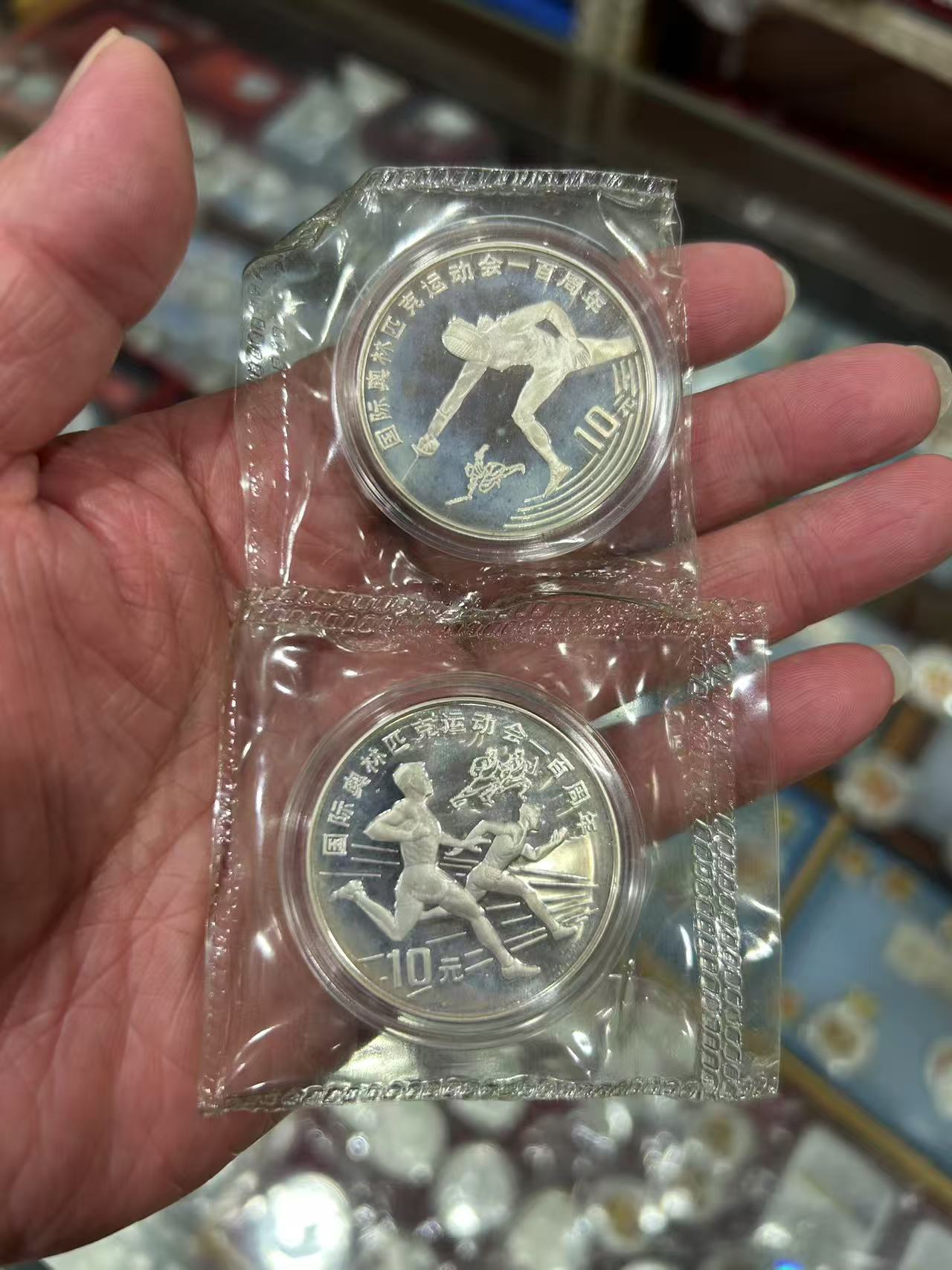 卖两枚奥运百年银币。