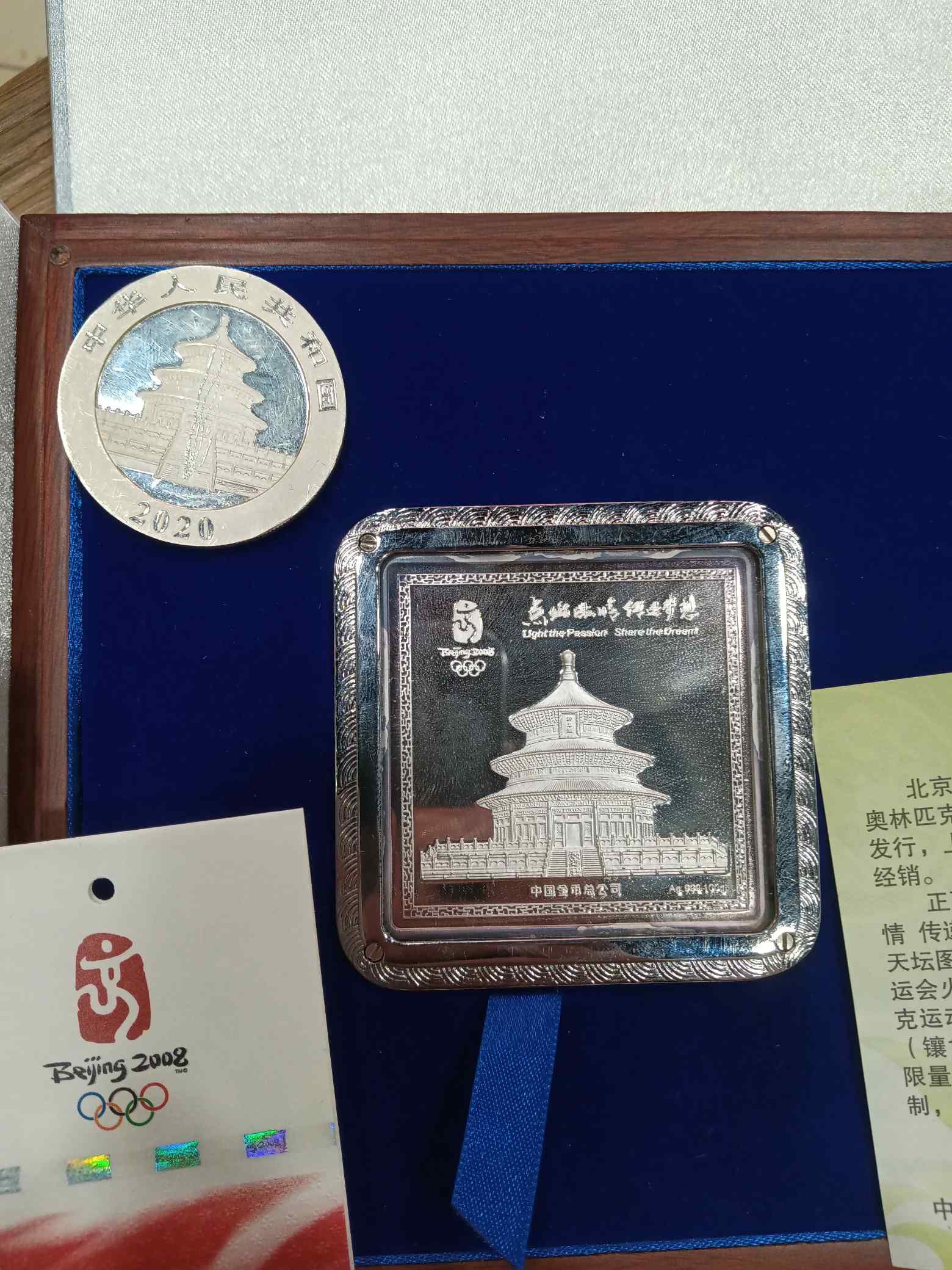 奥运金银1克金100克银+30克熊猫面有划,共售1860元