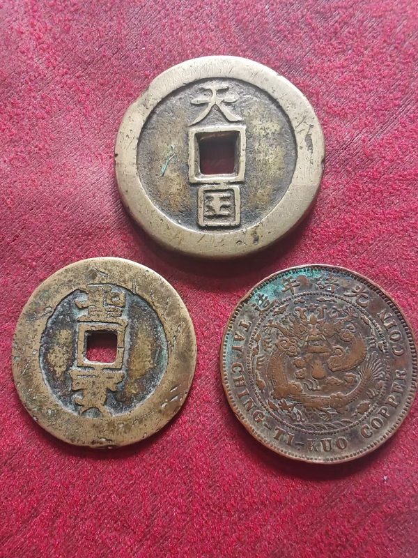 老藏家旧藏原汁原味。湖北中心鄂20文15克。太平天国10克。天国圣宝33克。3枚4.6w