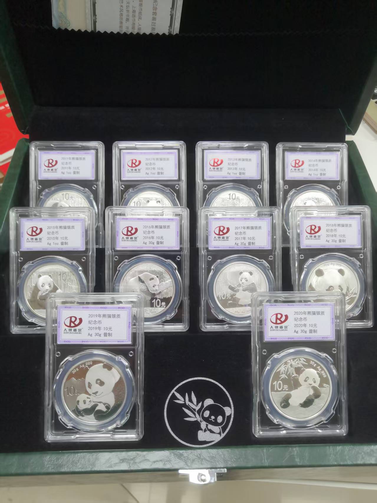 2011-2020带箱子国宝十年熊猫银币一套