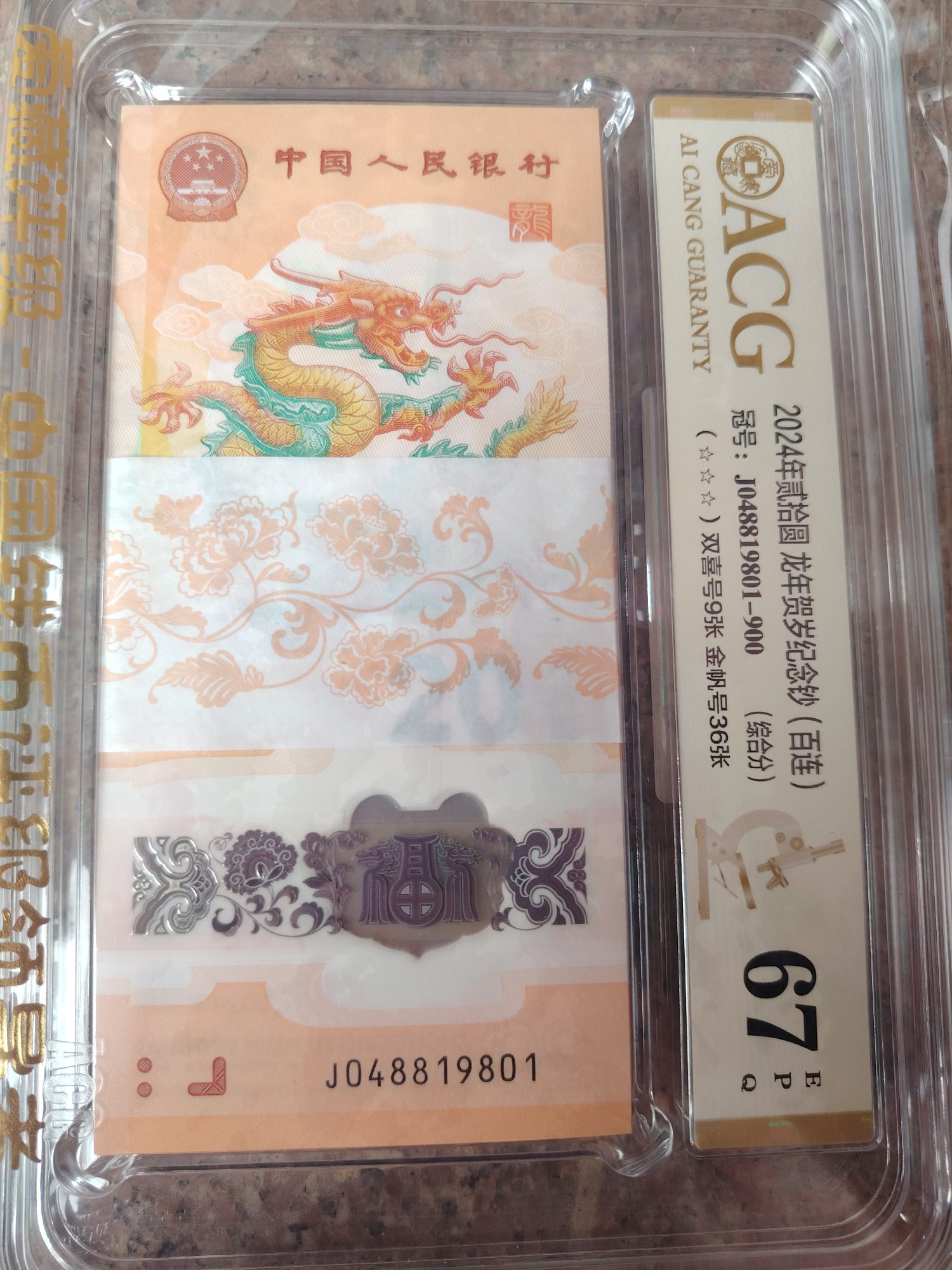 出生肖龙钞带4标百尾801,爱藏67分