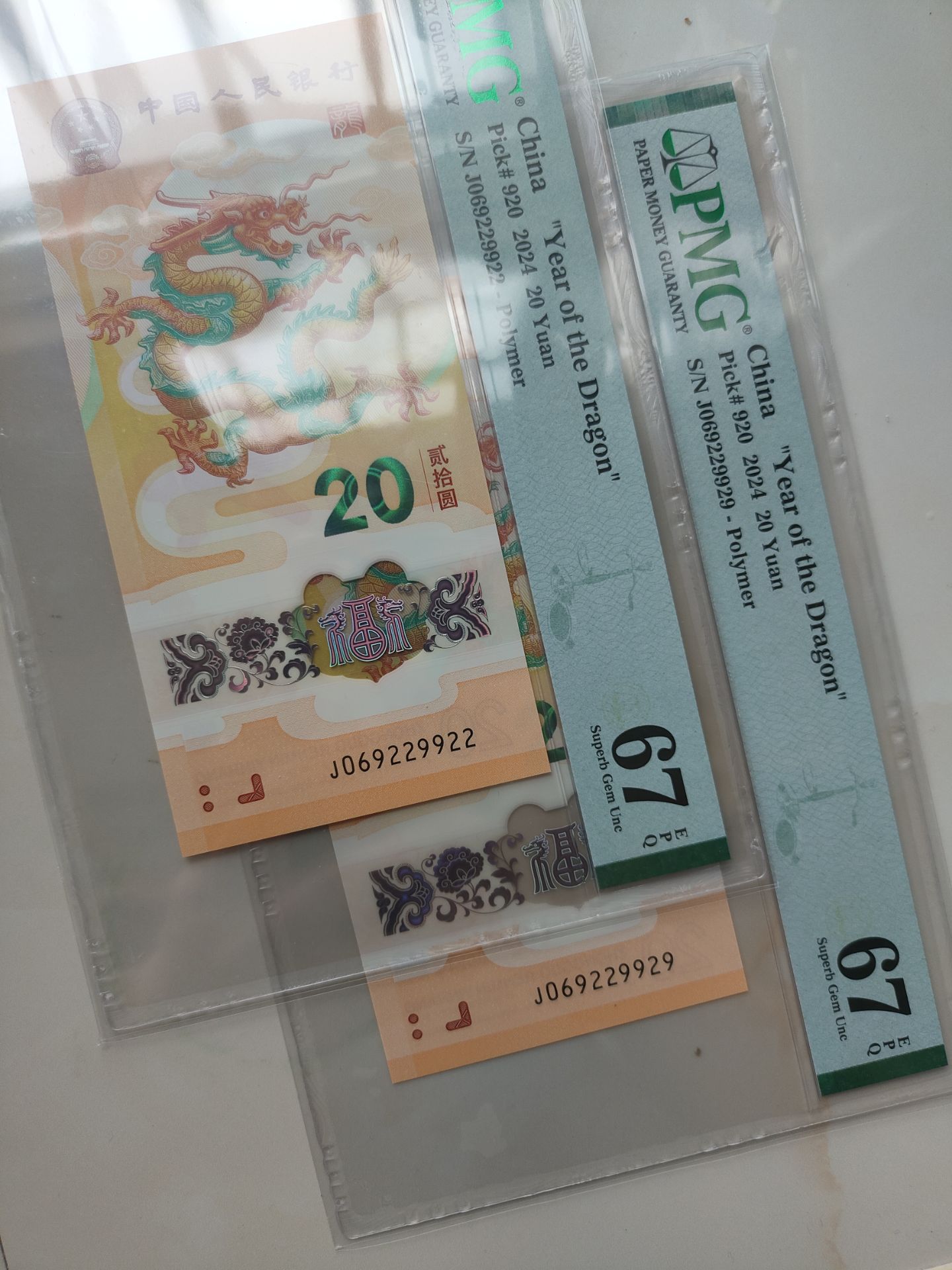 小龙钞0269龙四PMG67E组合漂亮。两张一起售1800元三包顺丰。