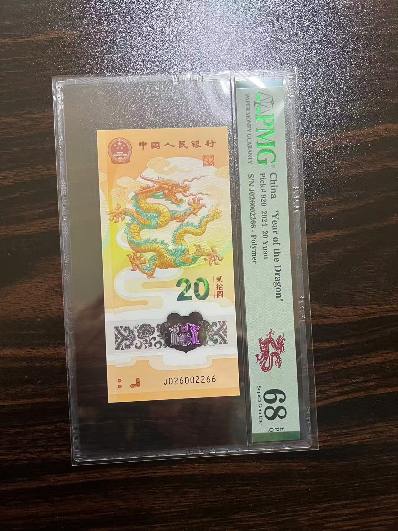 → 2张小龙钞全偶王026组合尾66和0268尾68PMG68分