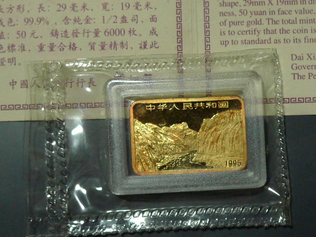 → 出售1/2盎司长江三峡金币原封一枚。