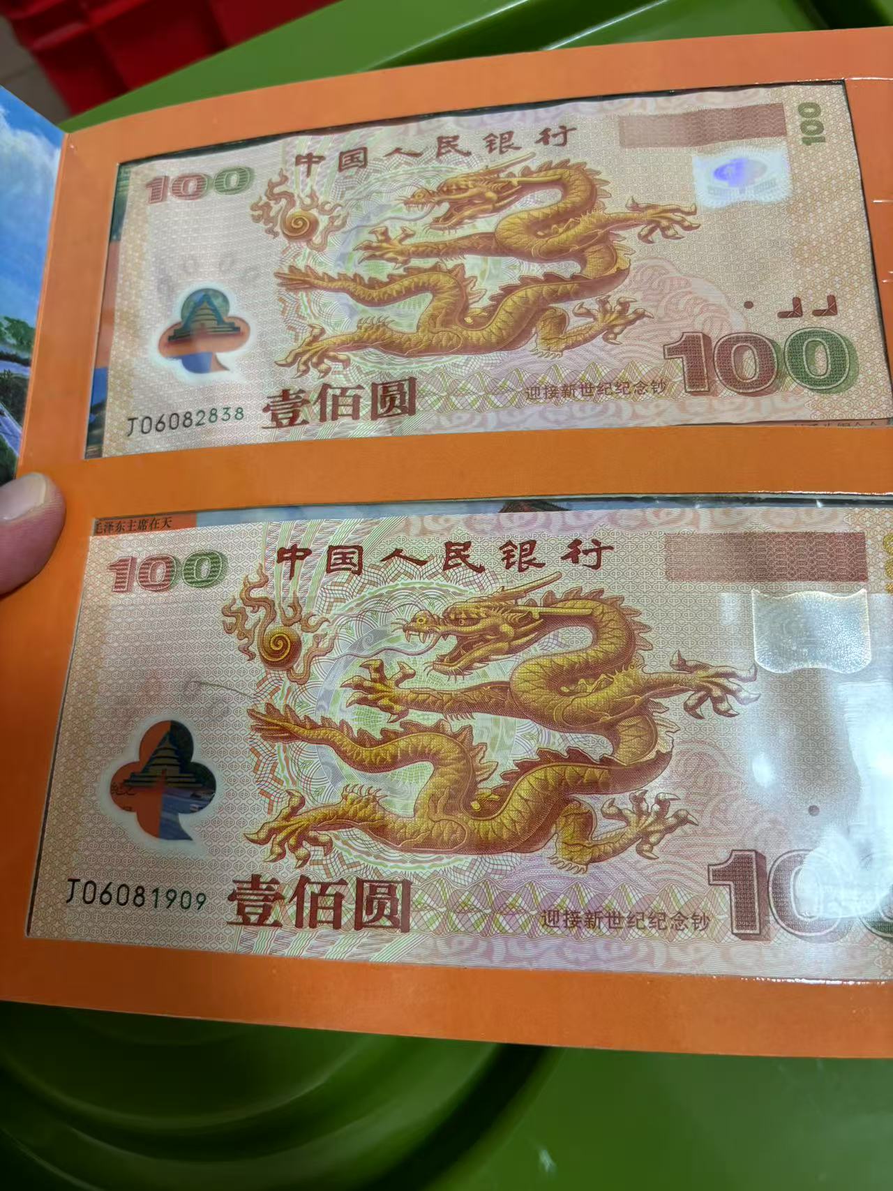 大龙钞,倒置号+无47尾8,无折无掉皮,两张一起合售4000元