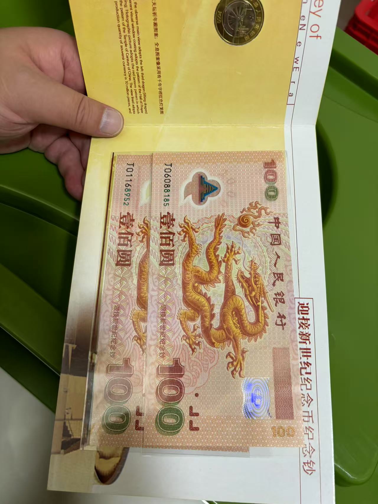千禧大龙钞无347金马号,品绝,两张通走1500/张。不单出,包顺丰,不议价