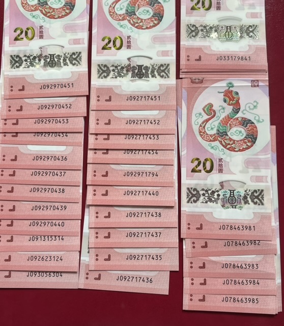 如图蛇钞散22张,和标十两组,81.82.82.41尾4张有点毛病(如图)一起当散张出31一张