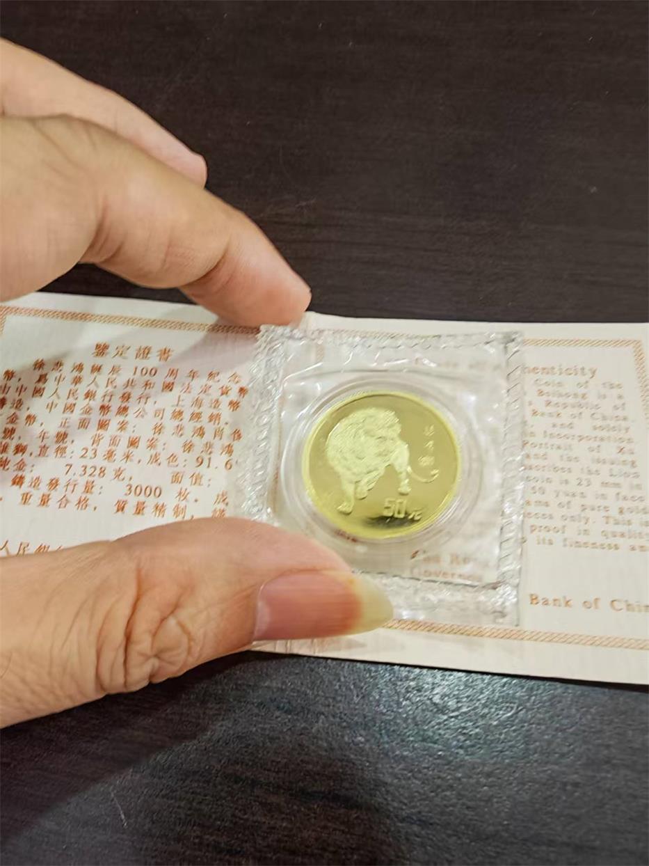 徐悲鸿100周年金币1枚,21500元。原封无盒包快递