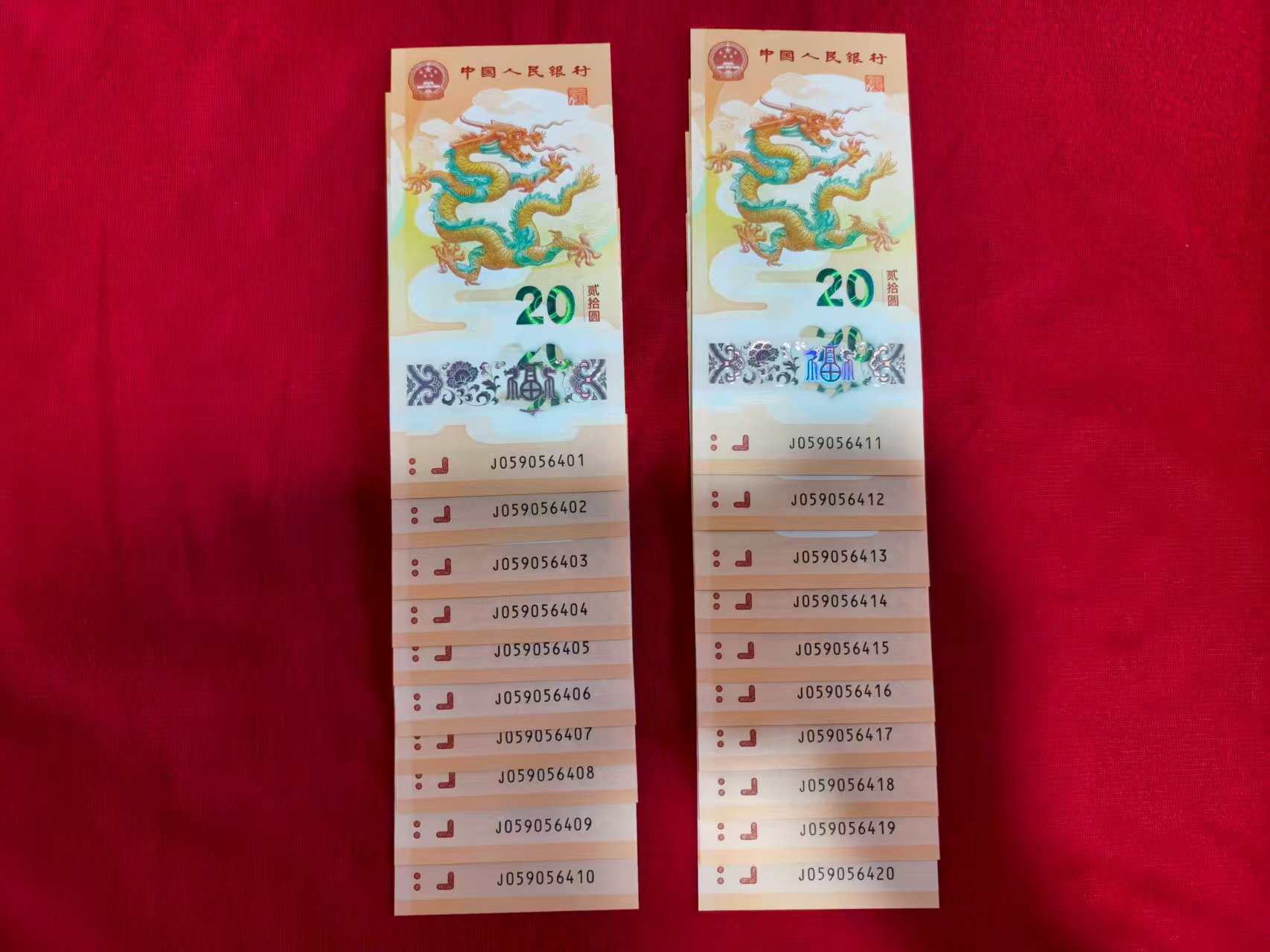 930/组出两组(20张连号)的小龙钞包顺丰