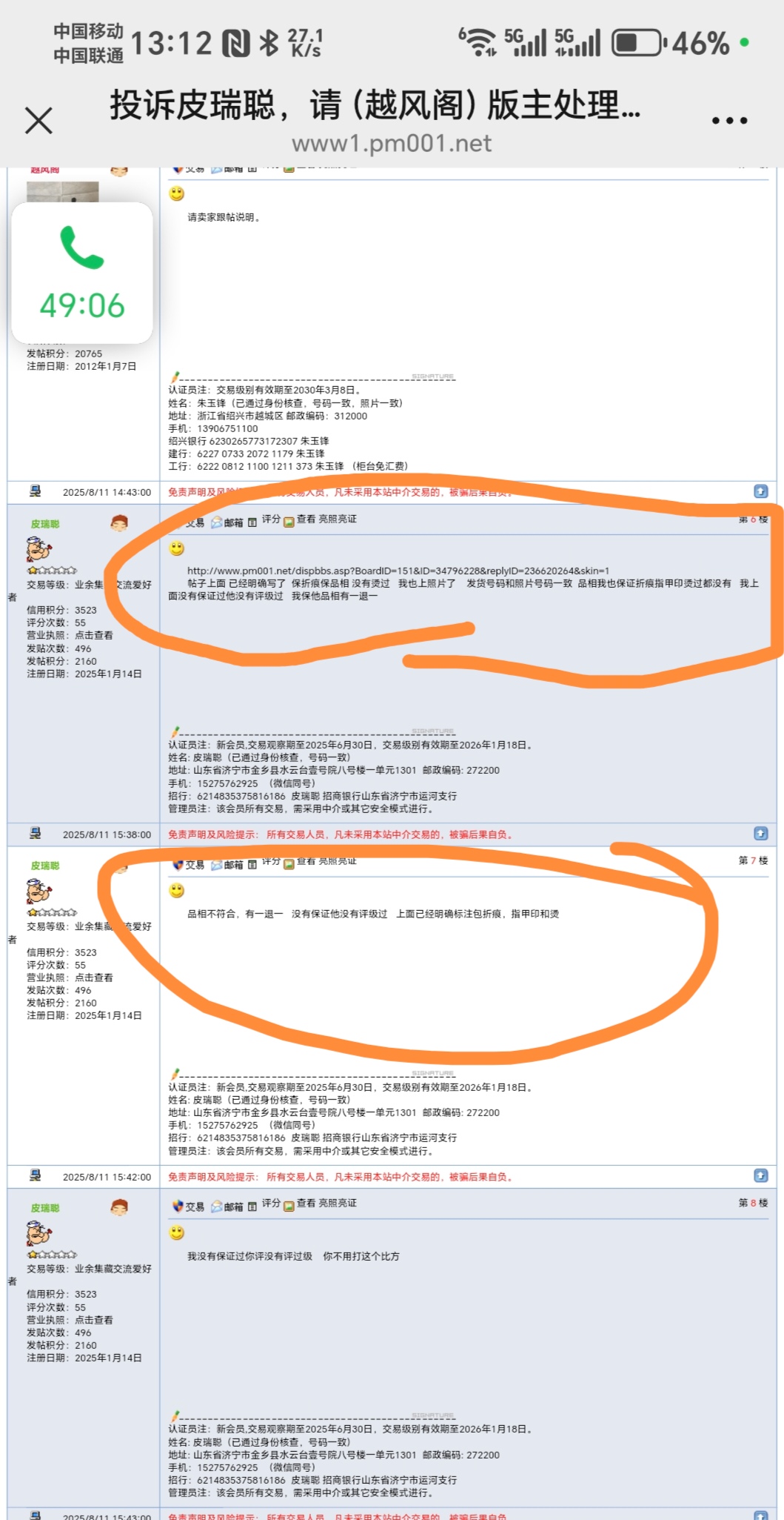 特别提醒:1,本人不替会员做担保交易,如有需要请去(中介支付专栏)。  2,调解纠纷时,如果我电话里谈到钱,请一定要求我在帖子里或站内信里以文字方式写出来给你,以防有人冒充我电话和你联系。  3,你来电时,请直入主题:报网名,谈事情,勿寒暄,谢谢