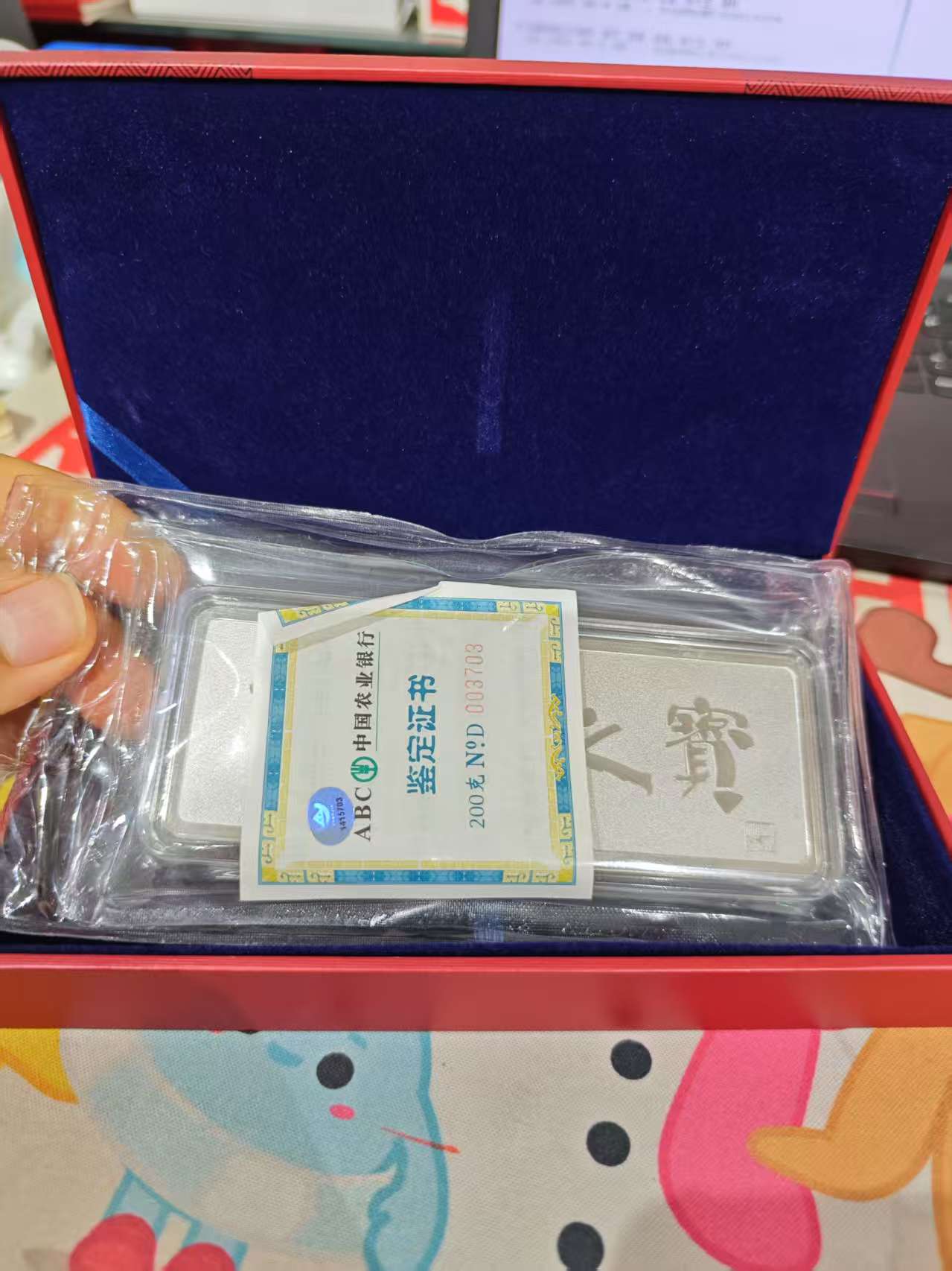 → 农行传世之宝200克银条一件,原封原盒