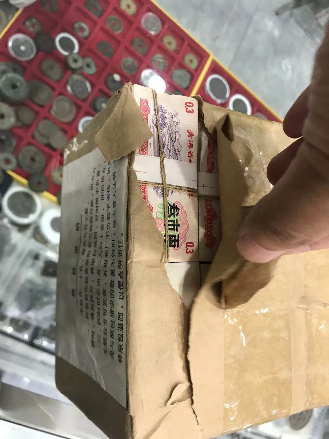 出青海粮票4包,其中一两、三两、半斤、一斤各一包,包装都有破裂,具体品相如图。
