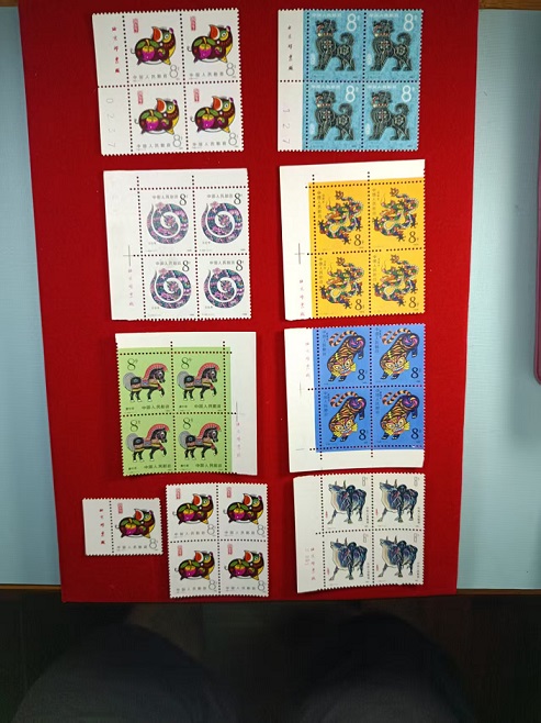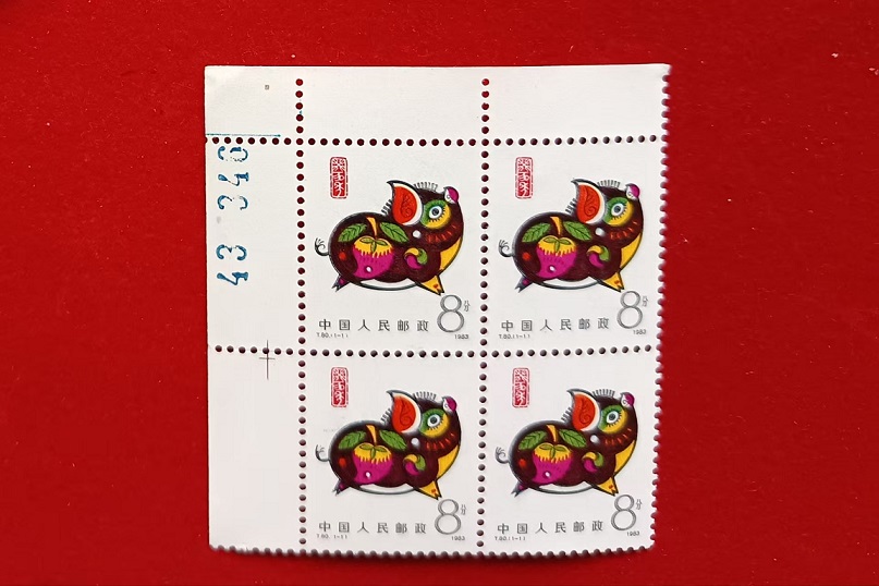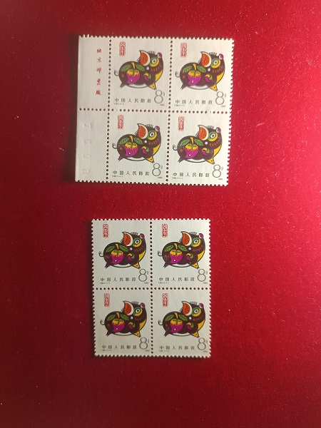 猪方联,原胶全品,无折无裁,面艳,灯下无瑕疵。厂铭180,裸方100。