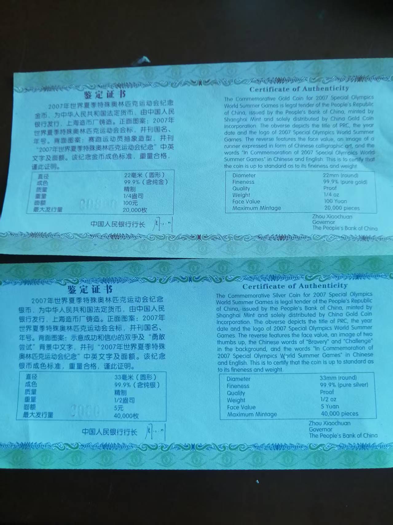 → 2007年世界夏季特殊奥林匹克运动会金银币1套