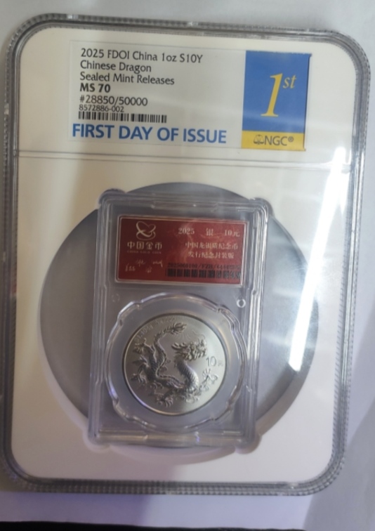 2025年中国龙封装 如意王 28850 NGC70分首日金兰标 15888元!