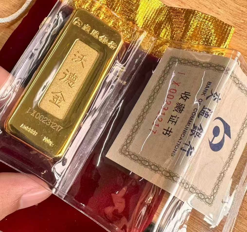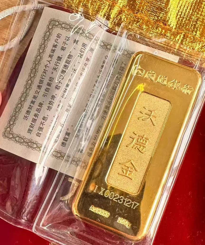 → 金价+3出售一根交通银行200克金条 原封 有证书