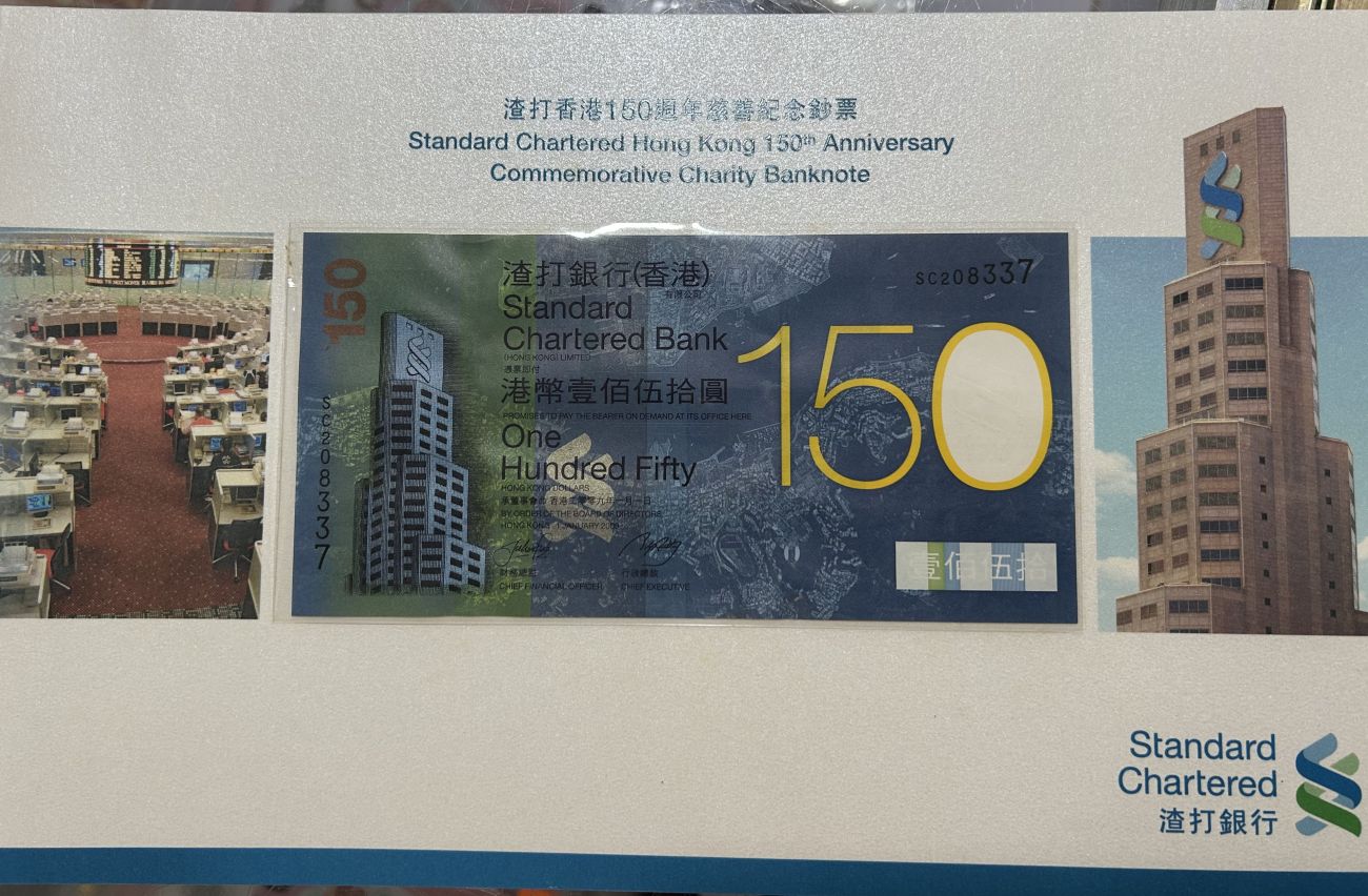 剩:渣打150单张带折子,号码:SC208337,全品带折,灯下极微斑,