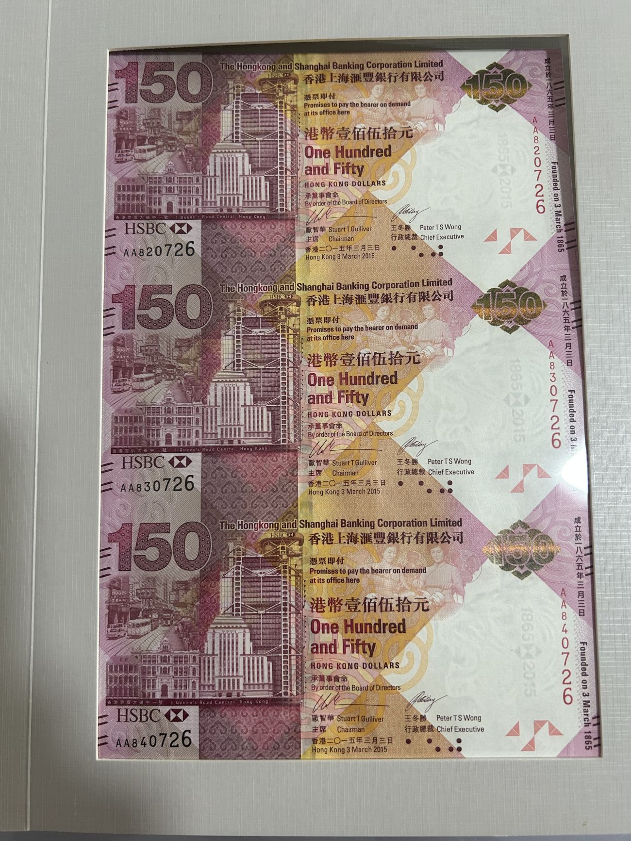 二:汇丰三连体带册子,全品,号码:AA82.83.840726,售价:650元