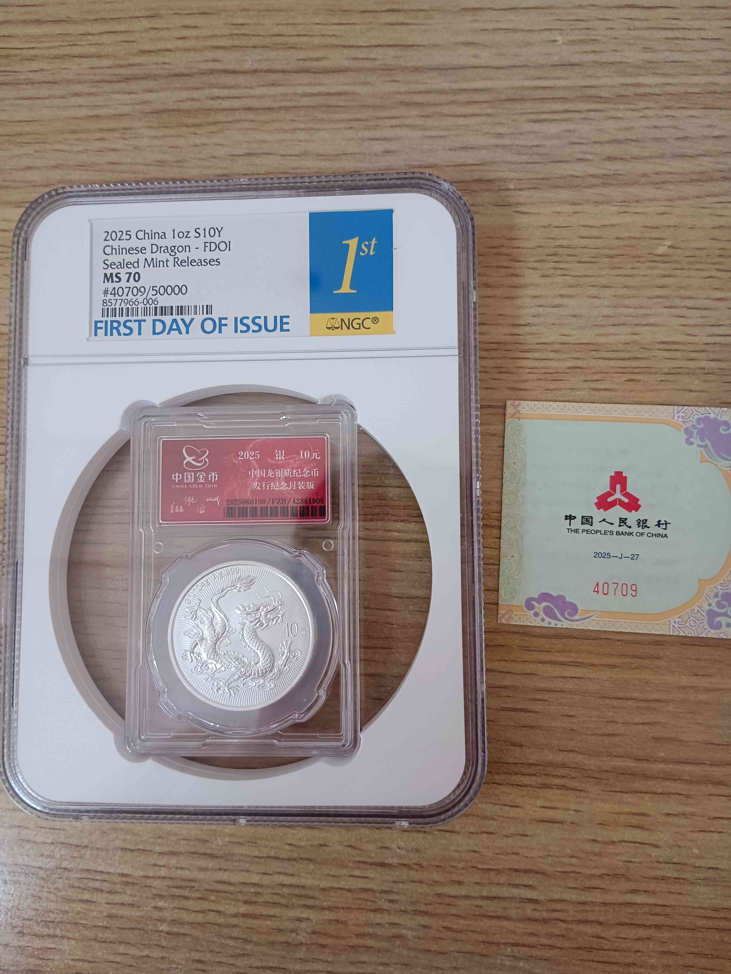 → 售封装龙首日70分4500元,电联确认。