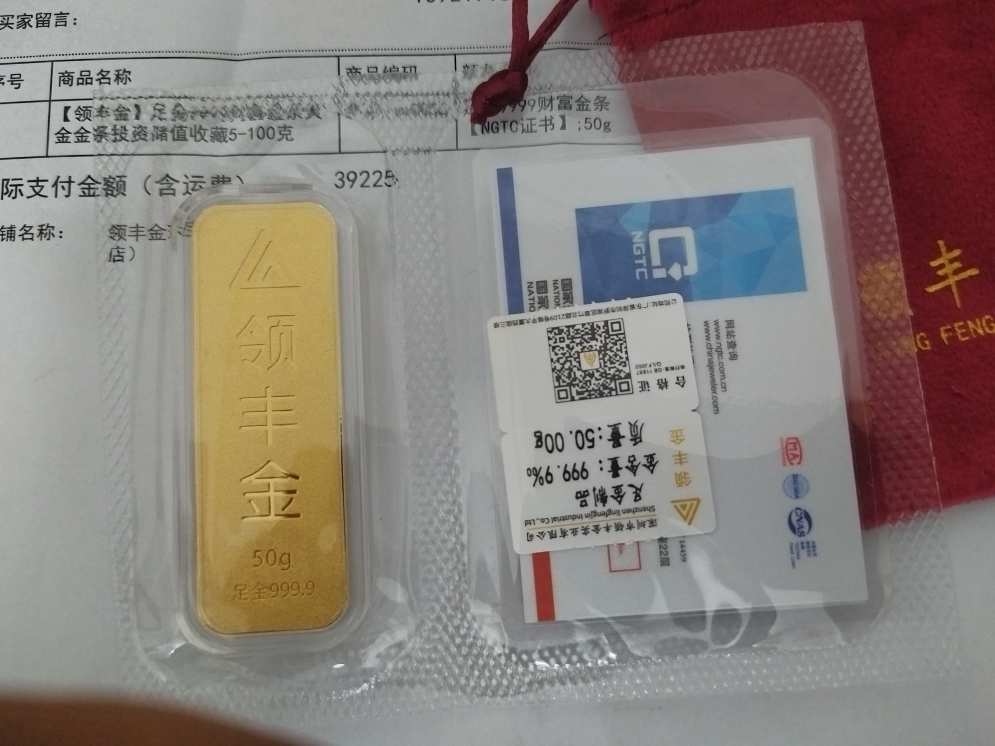 776元一克,出售50克领丰金金条
