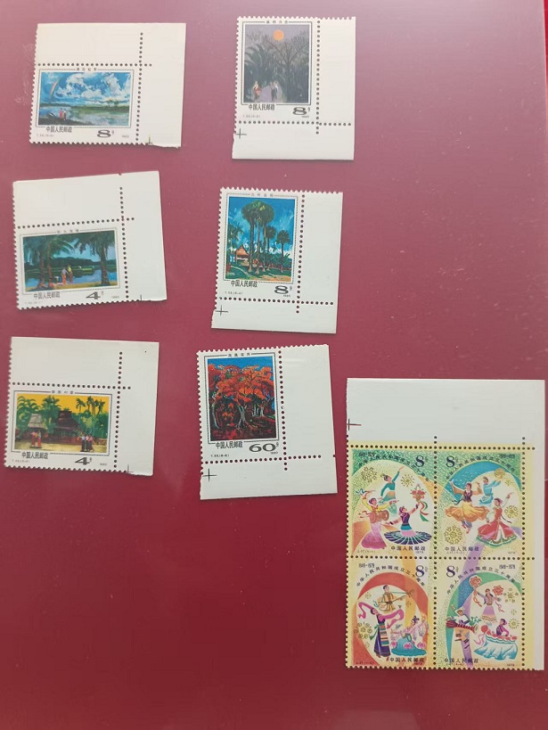 牧牛边角,有黄55元。气象,部分微黄20元,共2套。金鸡,有黄24,共6套。档案,部分微黄20元,共7套。