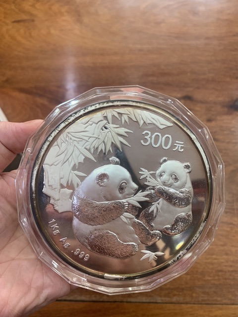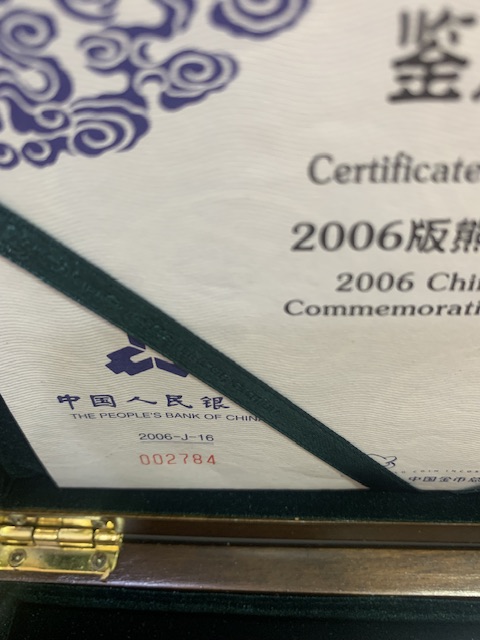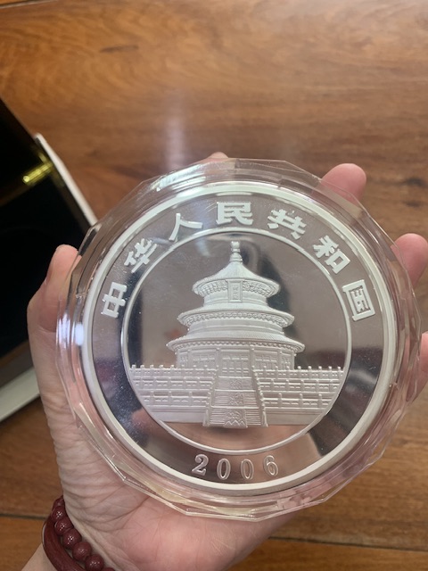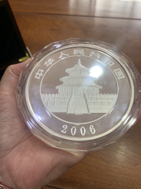 → 出06年熊猫公斤银一枚原盒证
