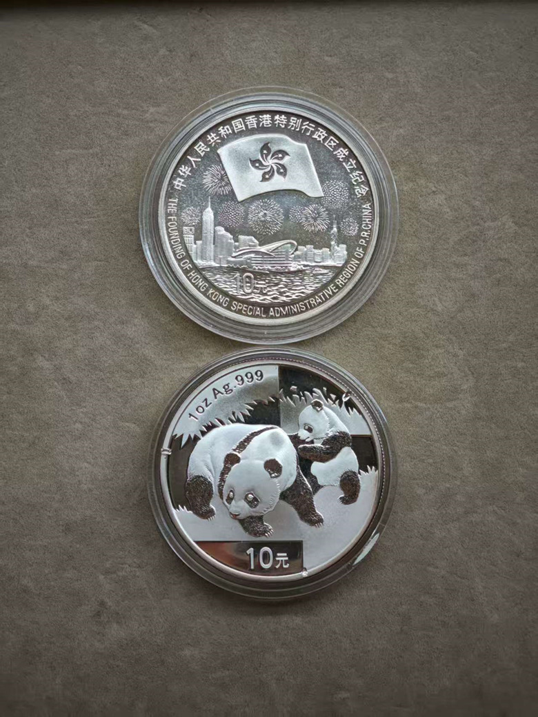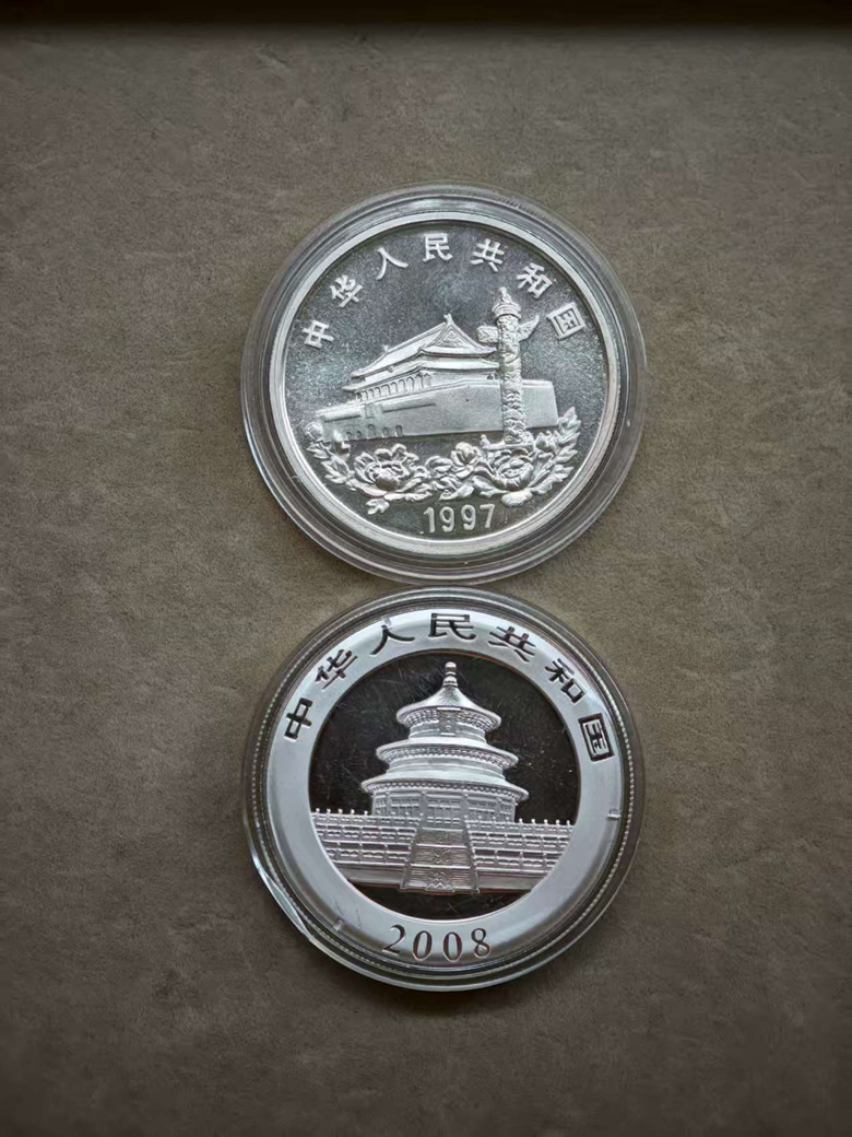 → 2008年熊猫银币+1997年香港回归10元银币