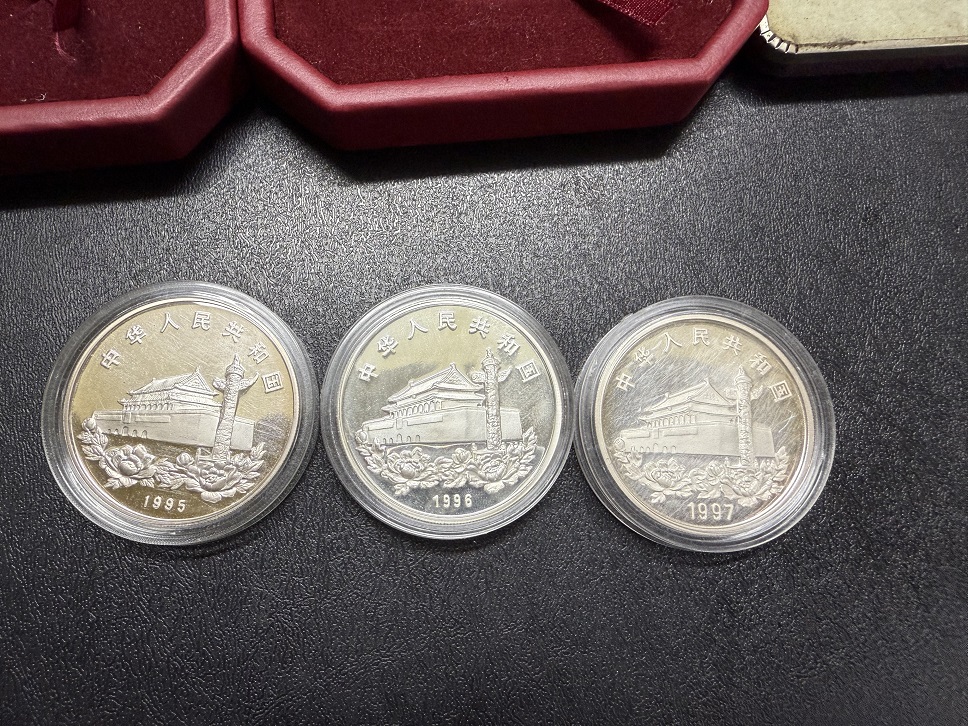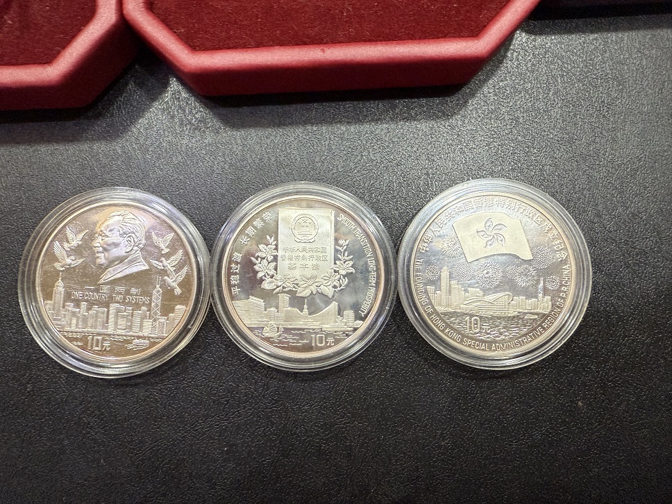 出售香港回归银币123组,带盒子无证书,好品如图:一起走1050元,三包到手!
