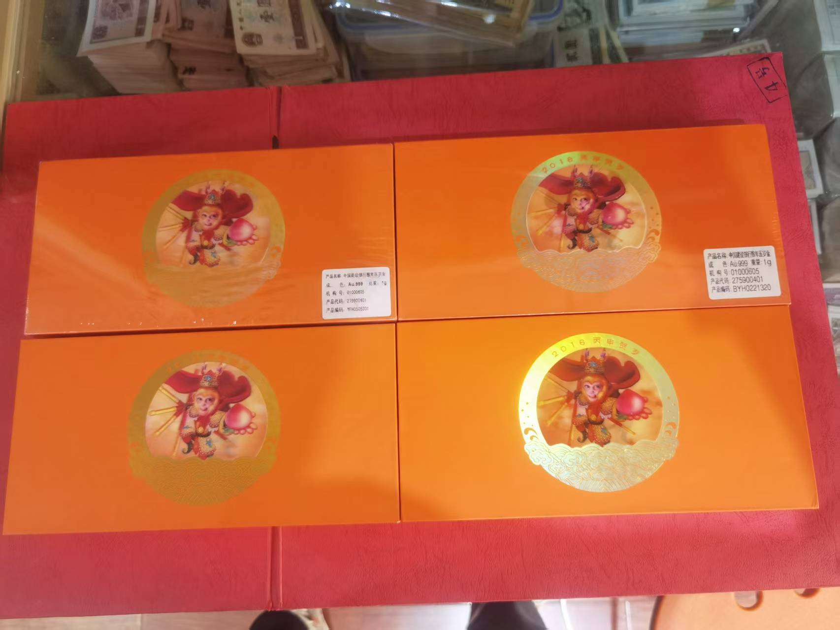 建行猴年金钞:4个,两个原封,两个开封,其中一个少证书,840元一个