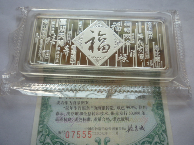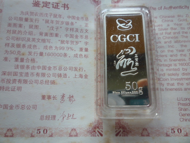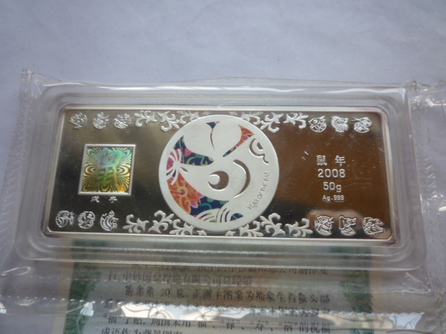 出金总08鼠年贺岁50克银条,造币总公司50克生肖银条各一条1100元,自己收藏未流通过的,相机拍的像素低,手机清楚,需要联系