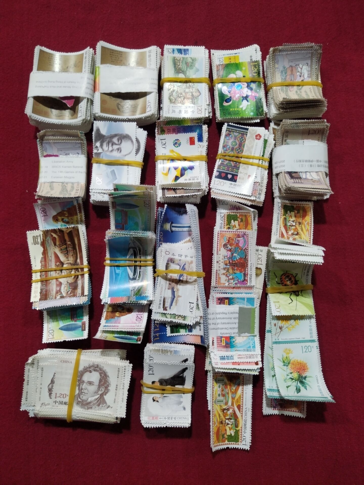 0.585元/枚,一起1930.5元。其中1700枚单枚,1600枚大块及撕口,可微信看图。