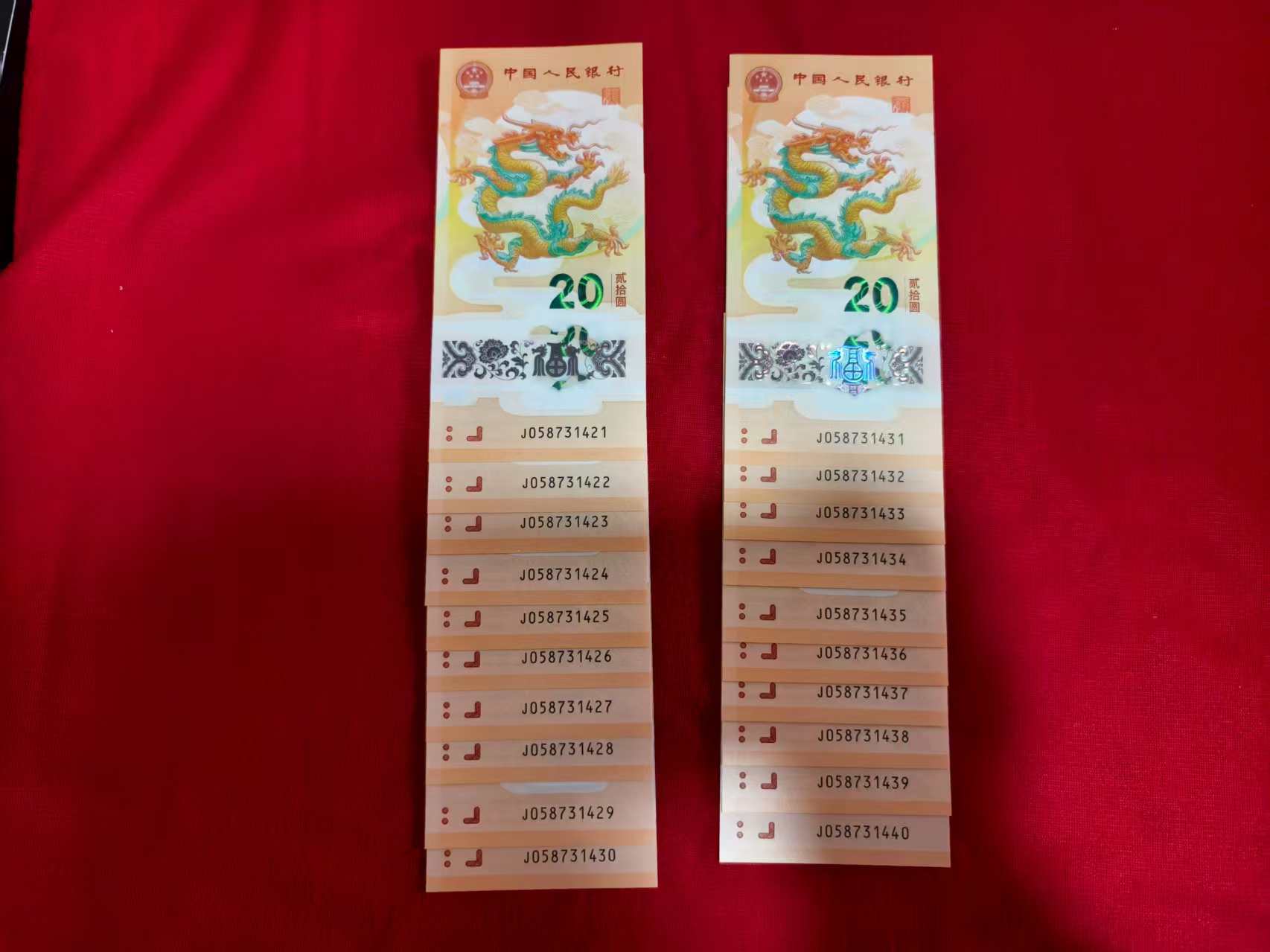 925/组出两组20张连号的小龙钞包品包顺丰