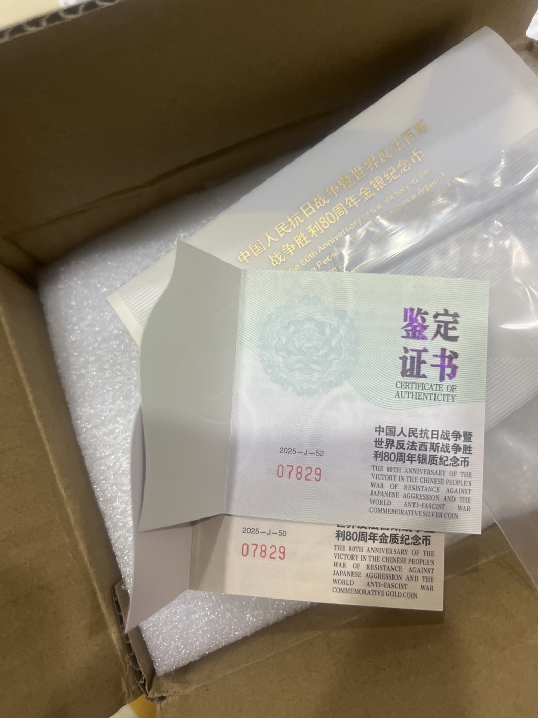 → 8700出抗战80周年金银07829