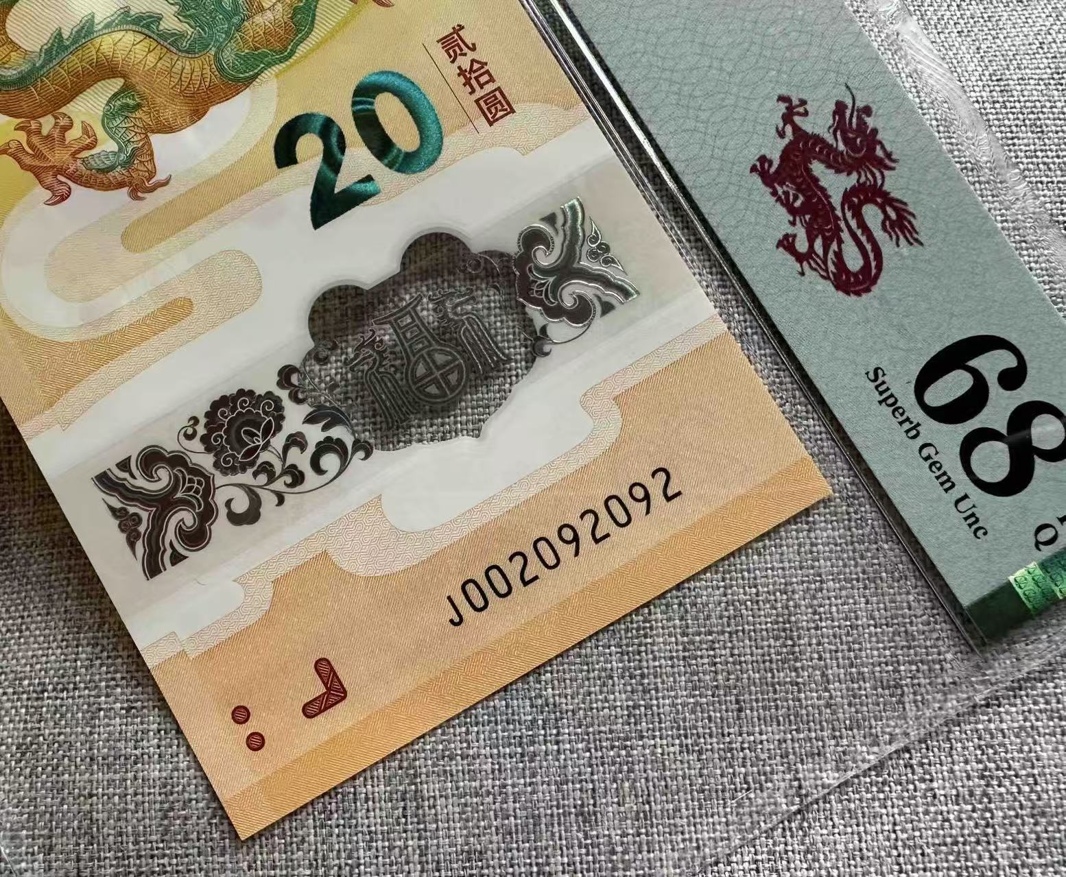 小龙钞002092092,pmg68分,卖6900元