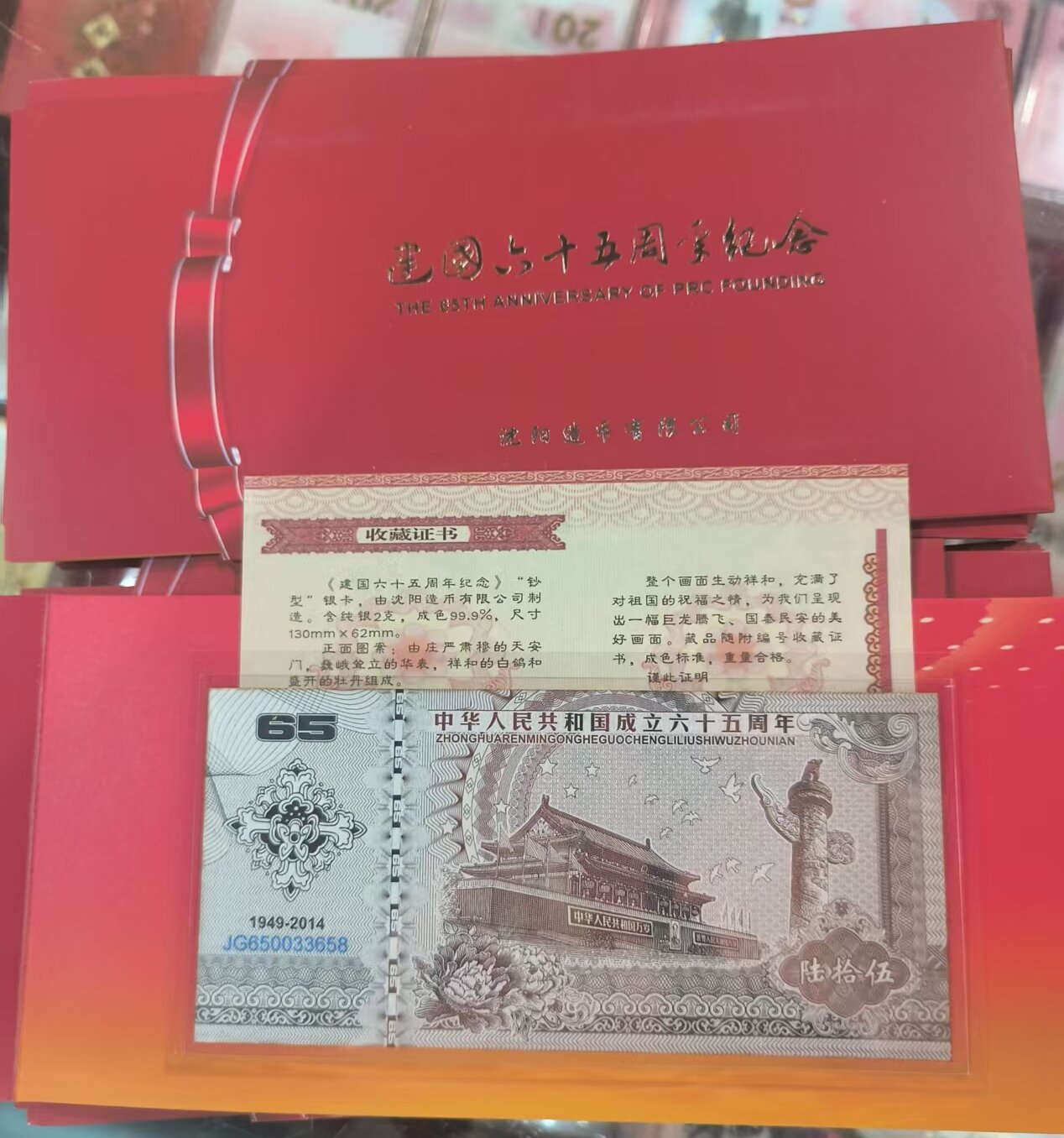 → 售建国65年银钞