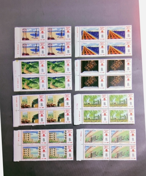 J8四五计划左厂铭方联一组,北方公司货,没流通了。面艳背白胶润无弱齿。