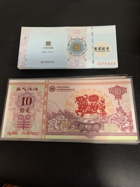 110出2015年10克羊年生肖银钞,110×35个,包装证书齐全,不单出,通走包邮