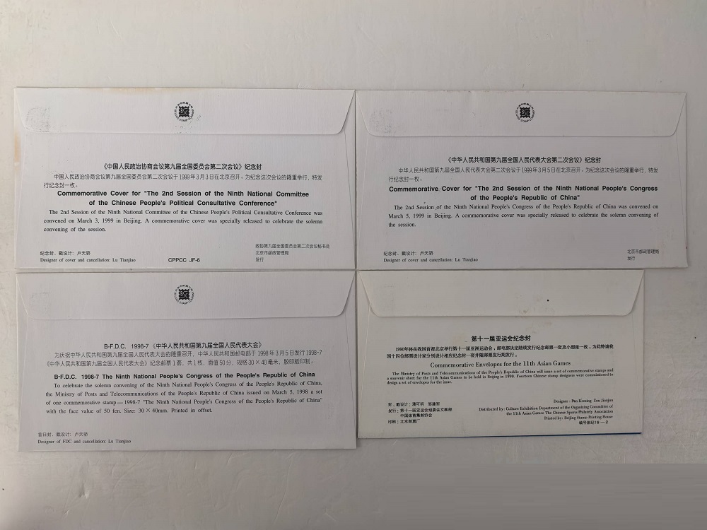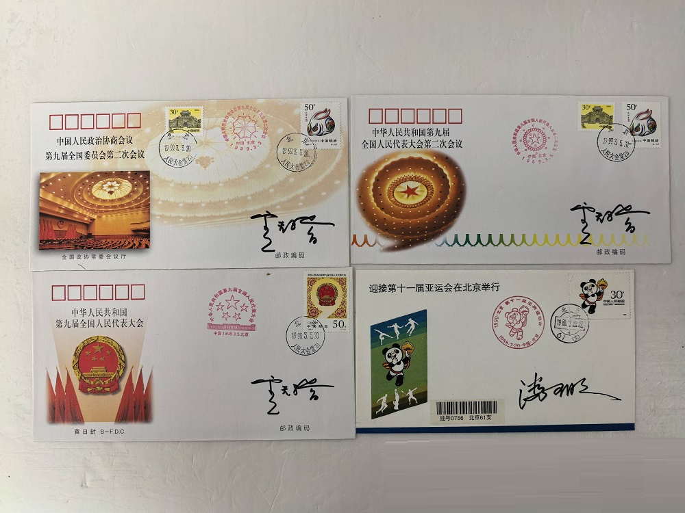 中国第一位女邮票设计家卢天骄参加第九届全国政协会议及第九届全国人大代表会议签名封三件,另潘可明亚运会,并亲笔签名封。难得一见,480包顺丰。