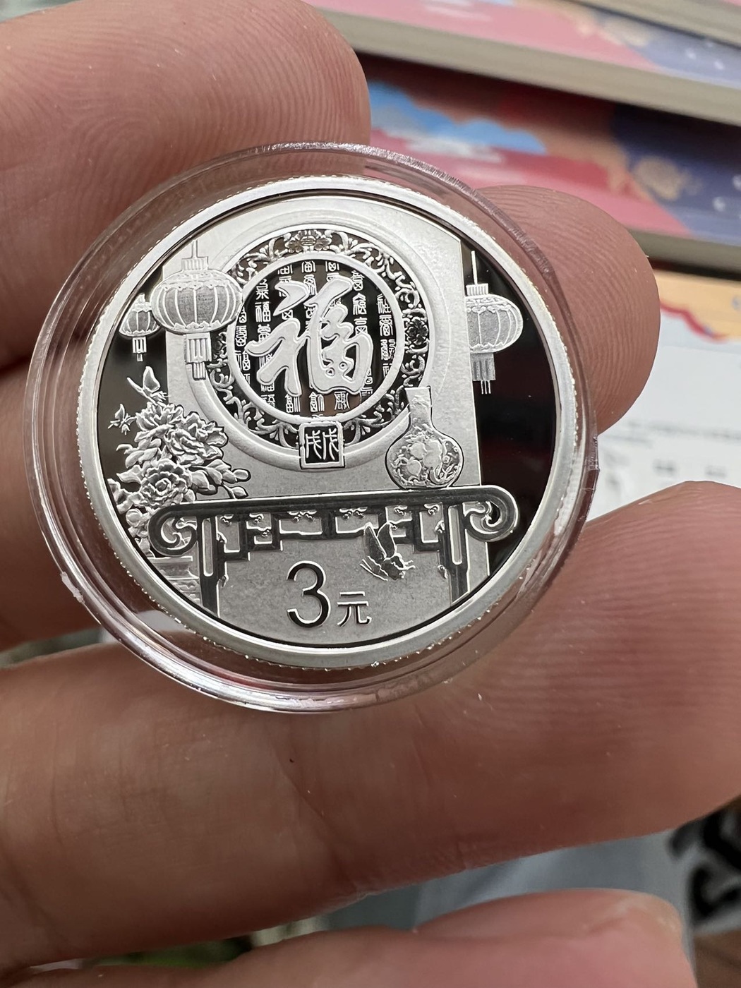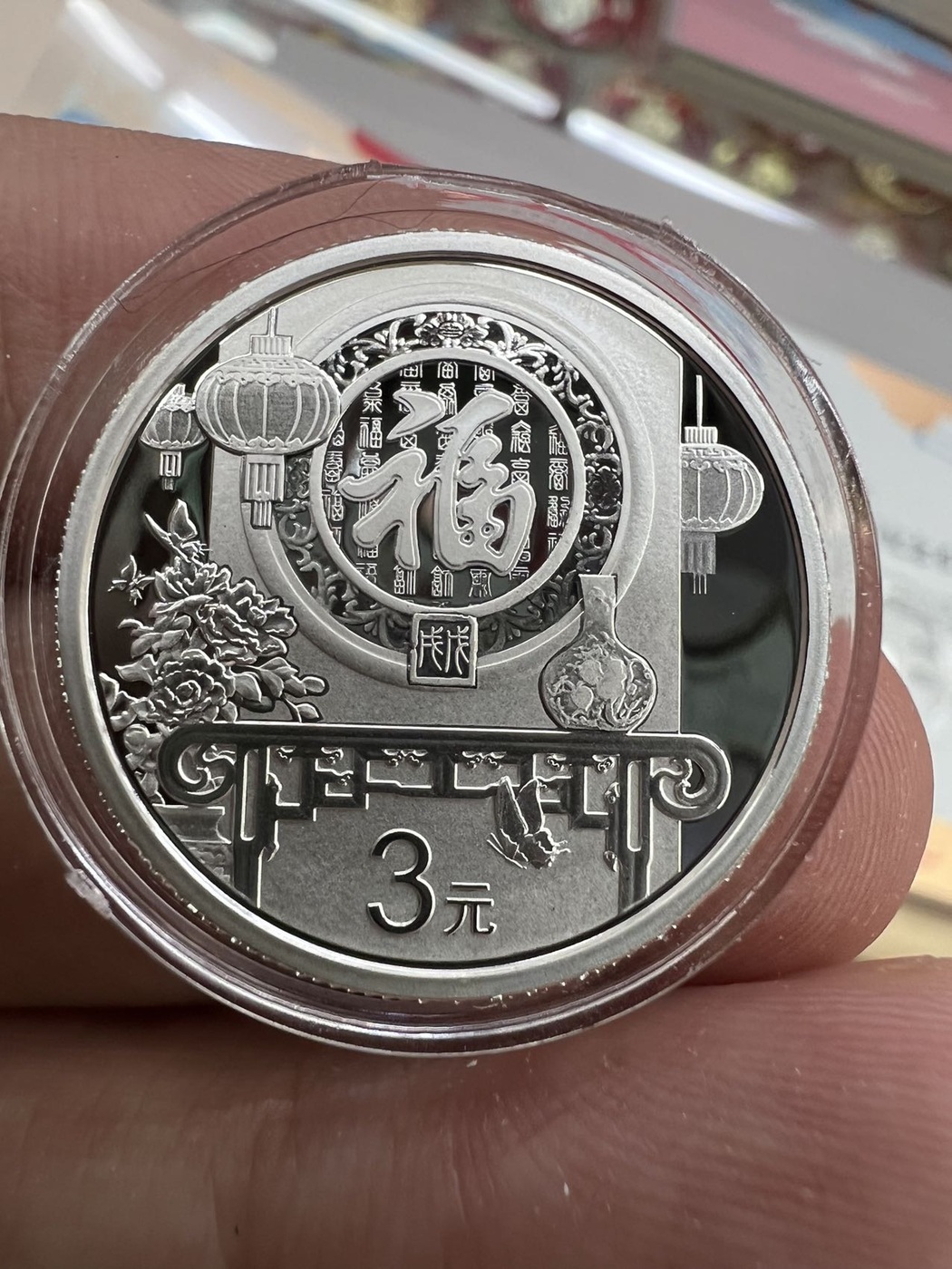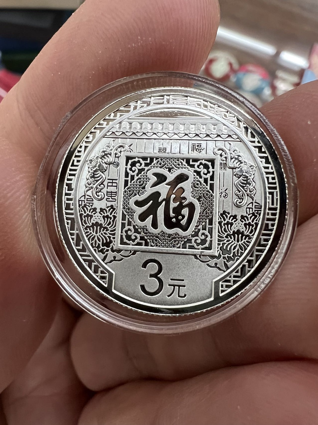 → 售16年-23年贺岁福字三元银币