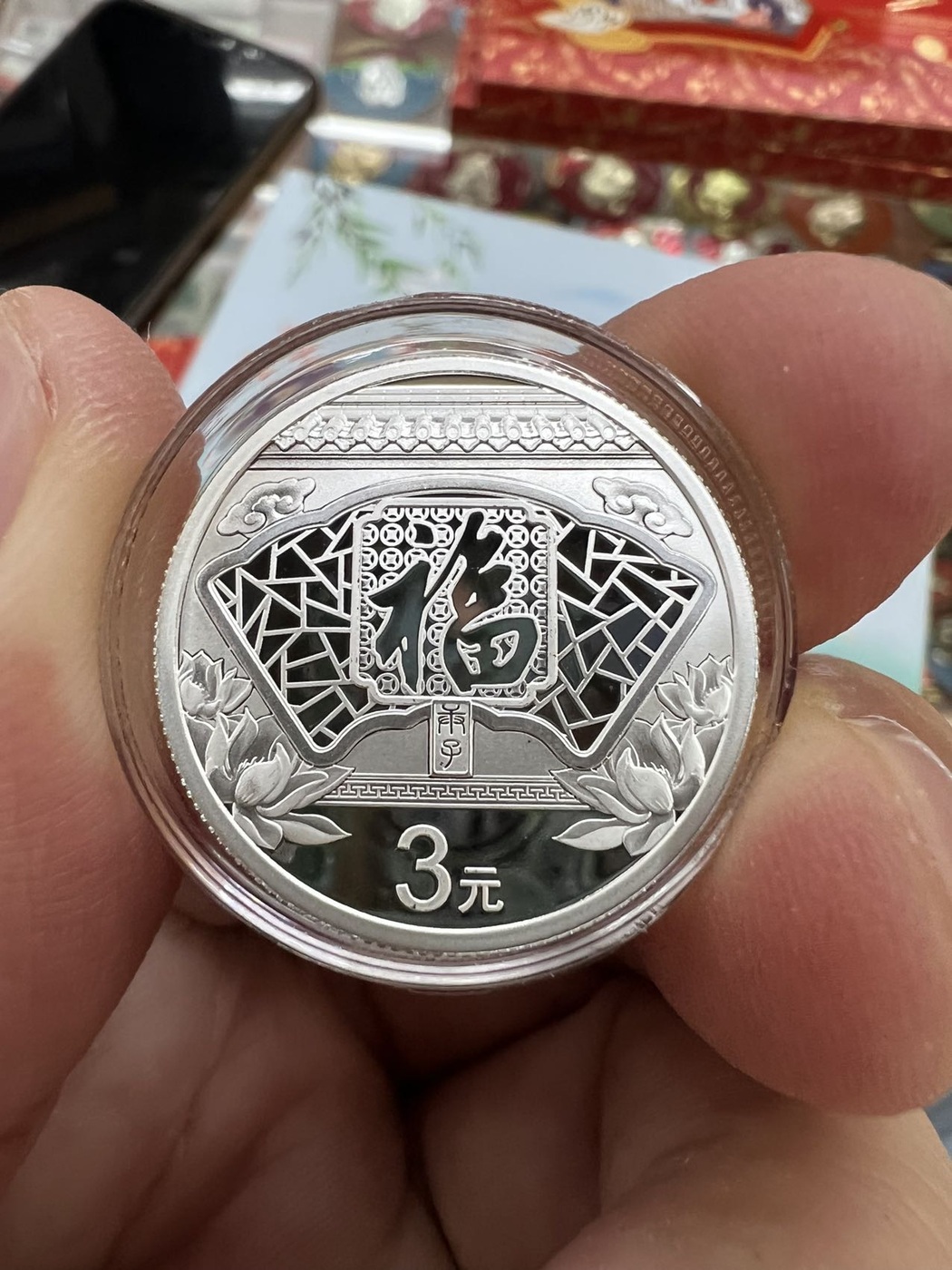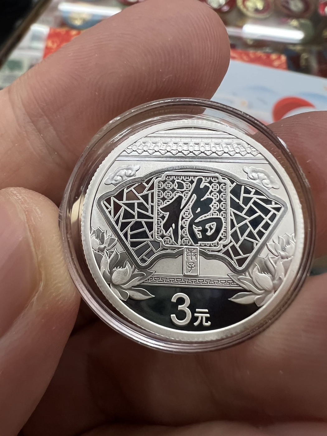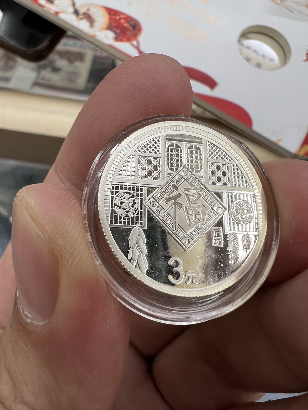 → 售16年-23年贺岁福字三元银币