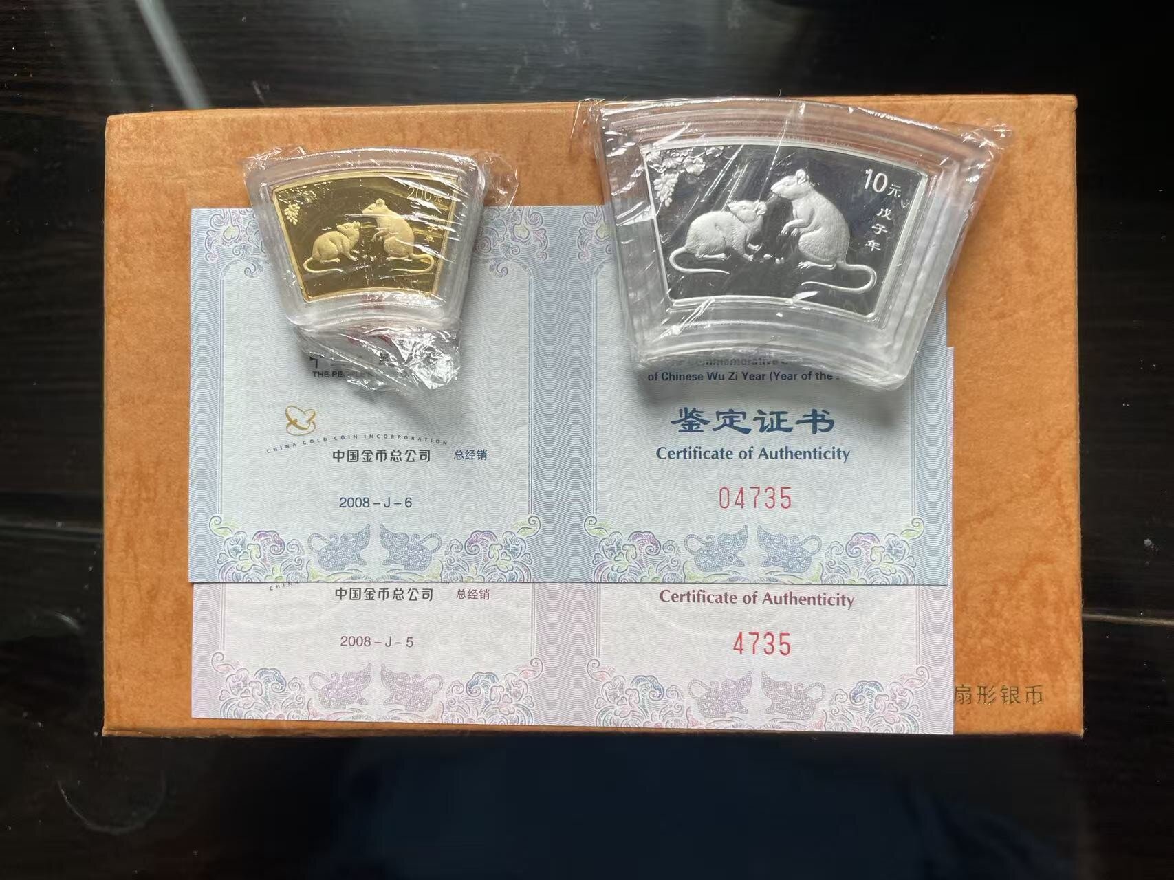 售:00年扇金龙1枚15000元,03年扇形金银羊1套14500元,08年扇型金银鼠1套15000元、15年扇形金银羊1套9300元,17年扇形金银鸡1套9000元。