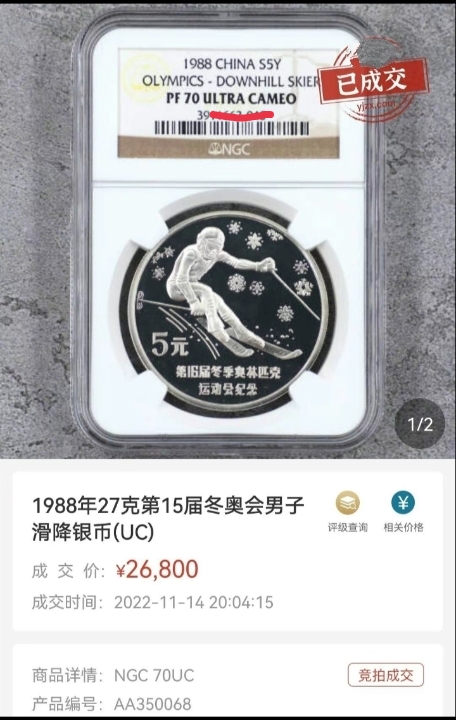 如图 88年冬奥银(错币)发行量10006枚 当年银币收藏意识差,NGC68CA已属不易市场难觅,潜力品种,9800元。不常在线联系后,双方确认为准!