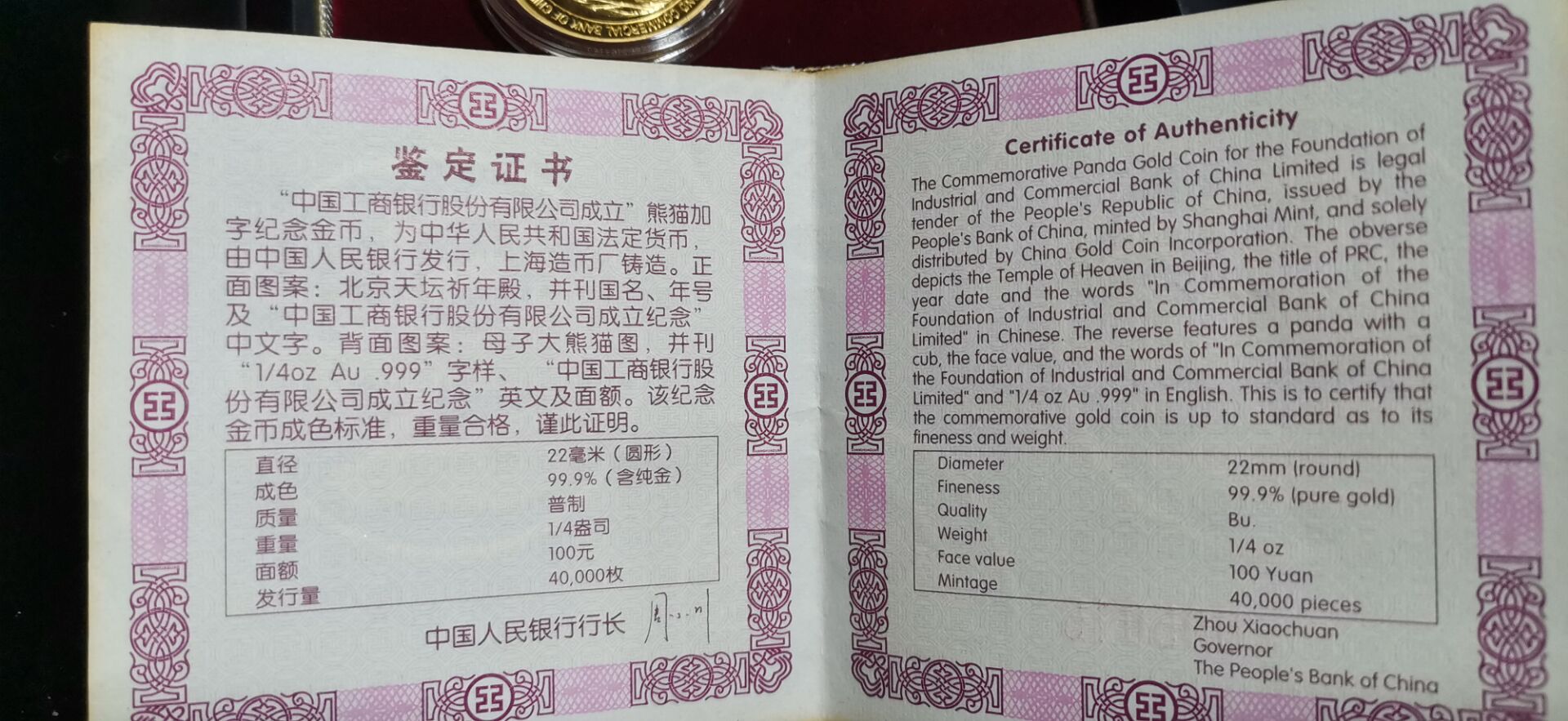原盒 原证书齐全 实物如图 【注面值100。。只有0中间有一小红点氧化】 不嫌弃 不挑剔的来