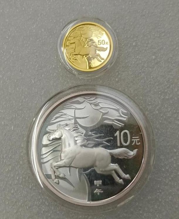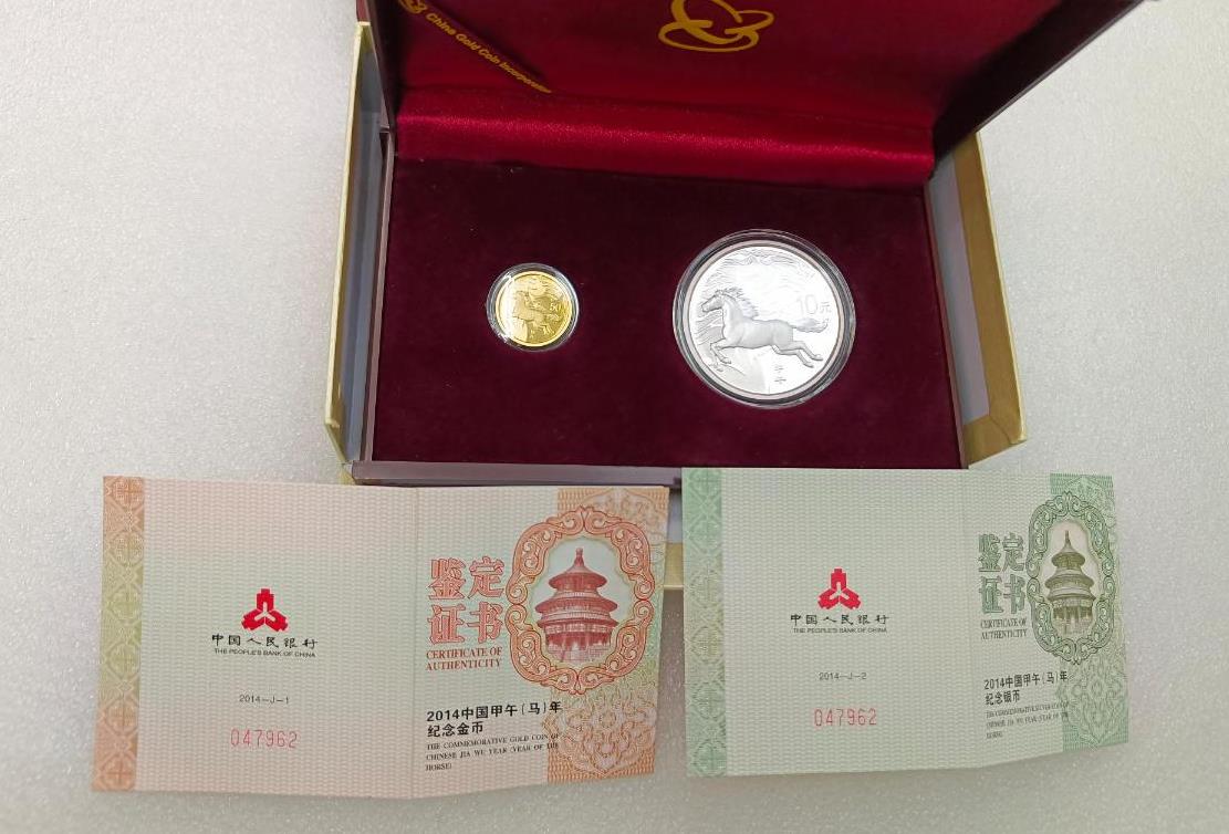 2014年本金银马1套,带原盒子证书,银币正面有白雾,价格3300元/套