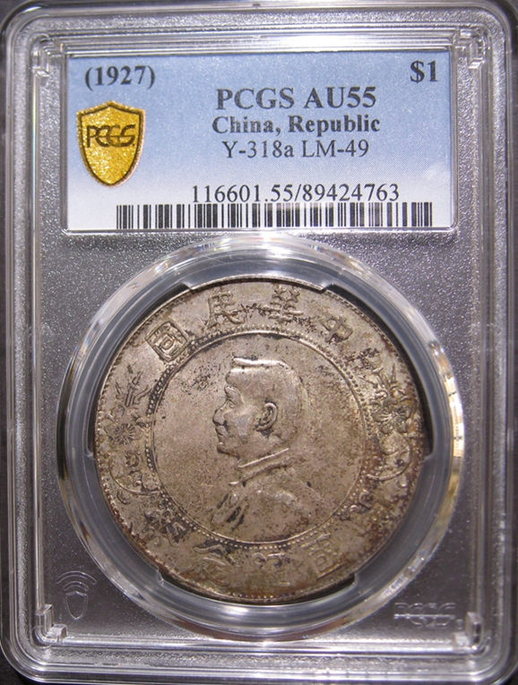 → 出售PCGS~AU55分五彩光小头和XF45分环彩九年精发