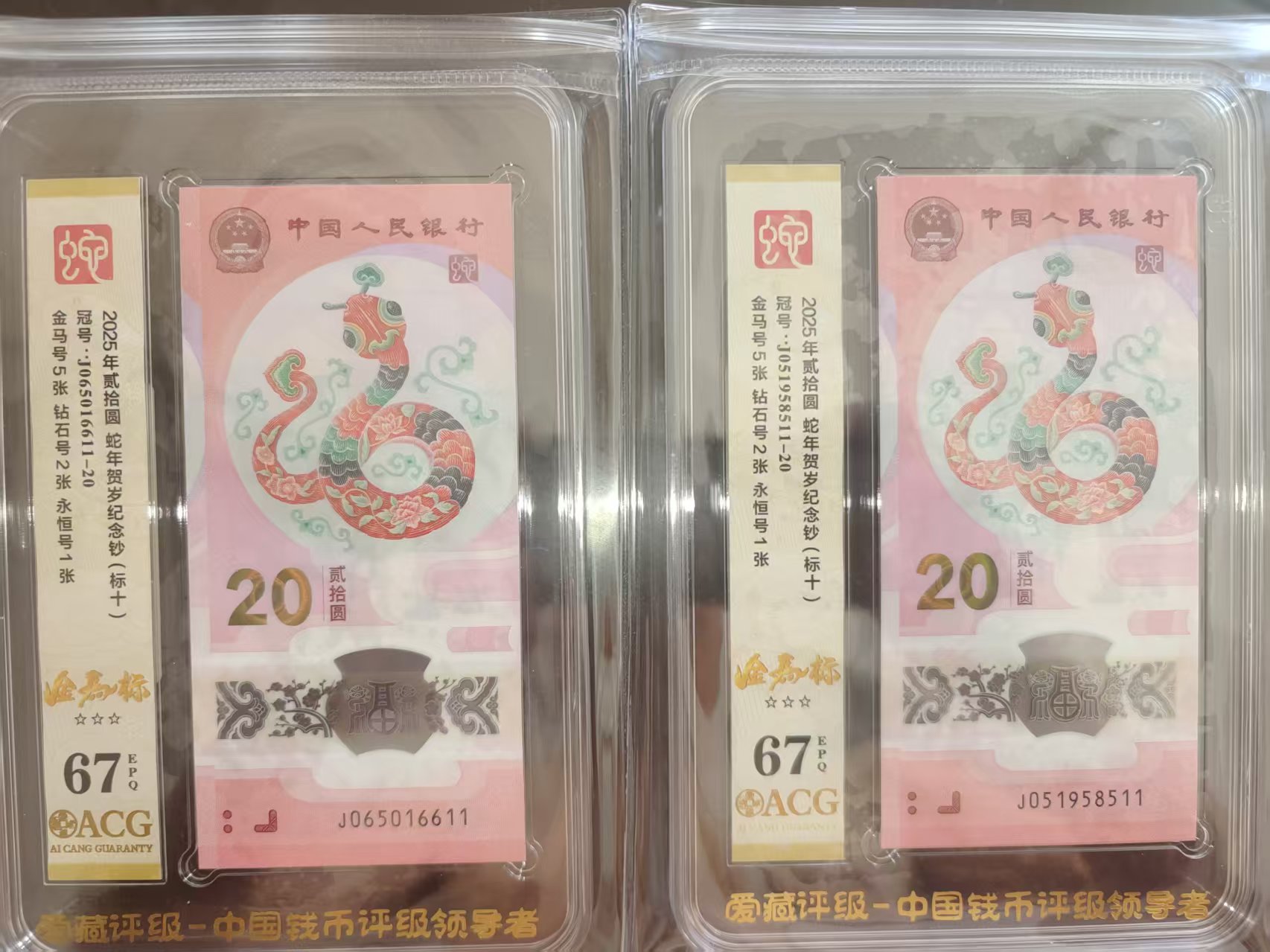 → 低卖2组爱藏金马号蛇钞标十