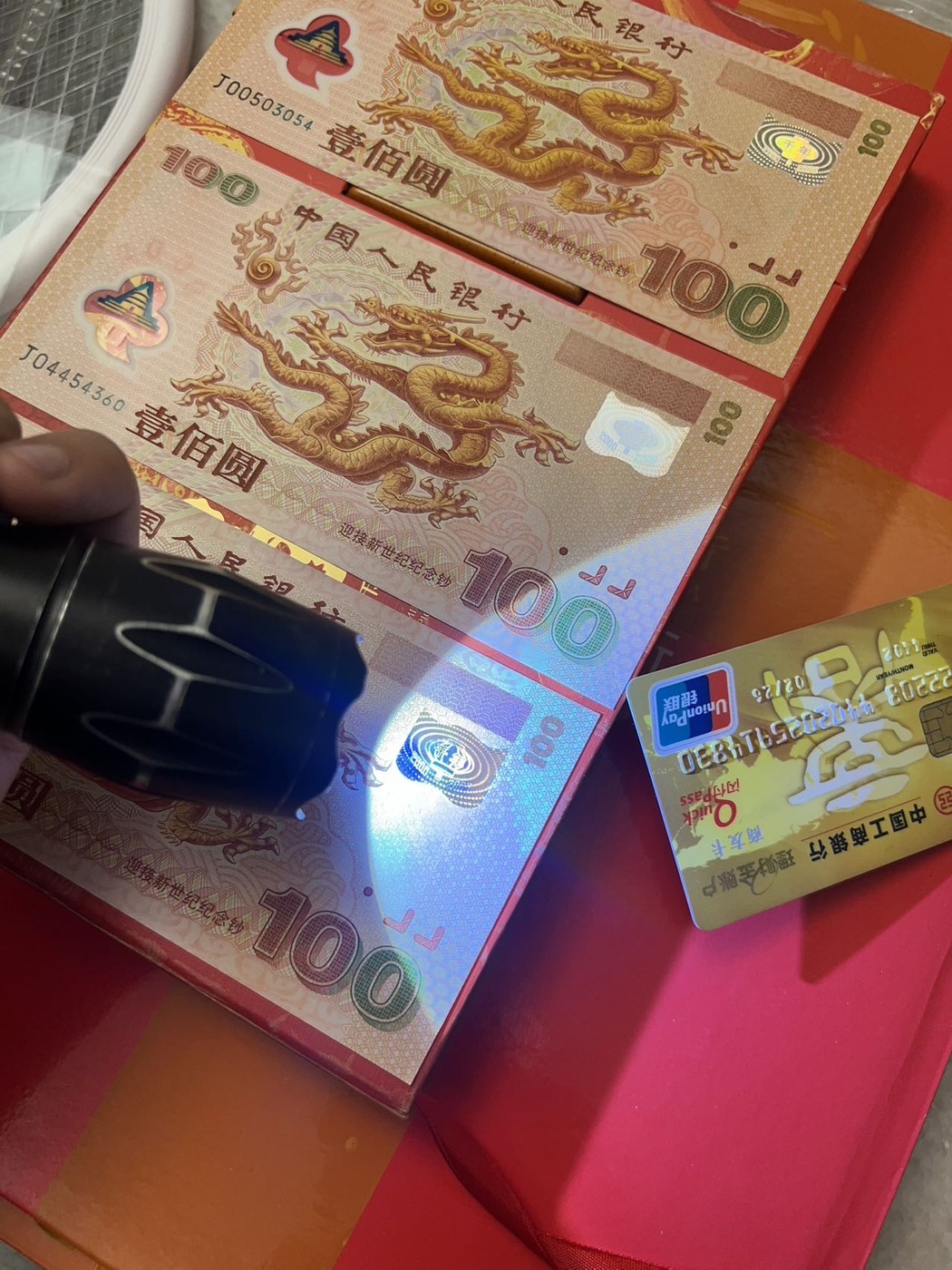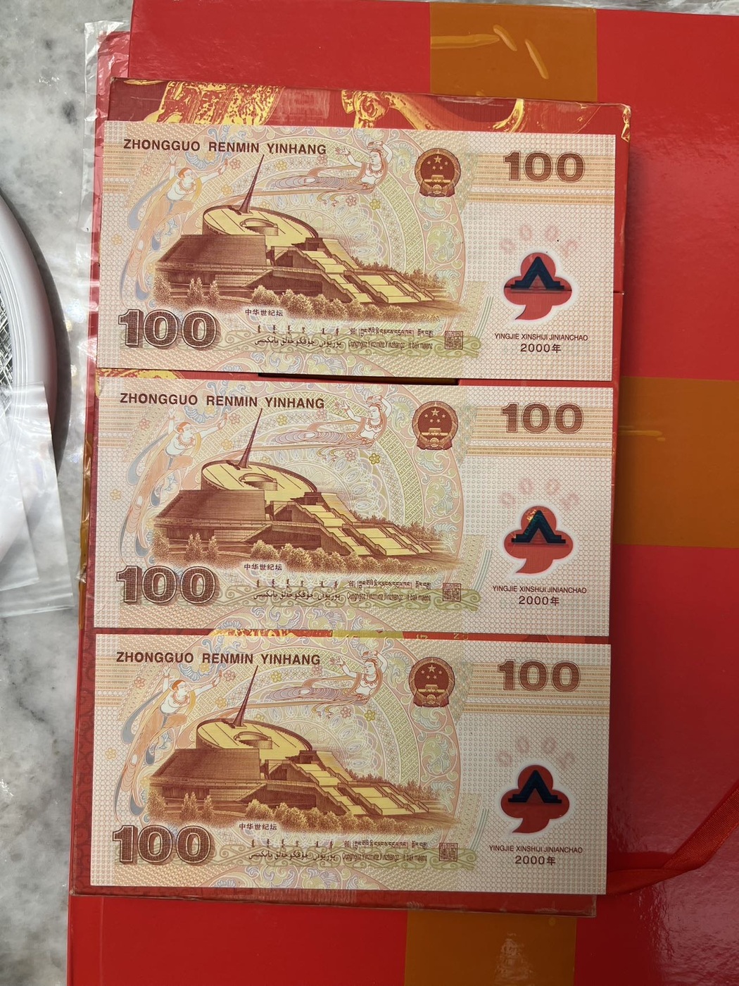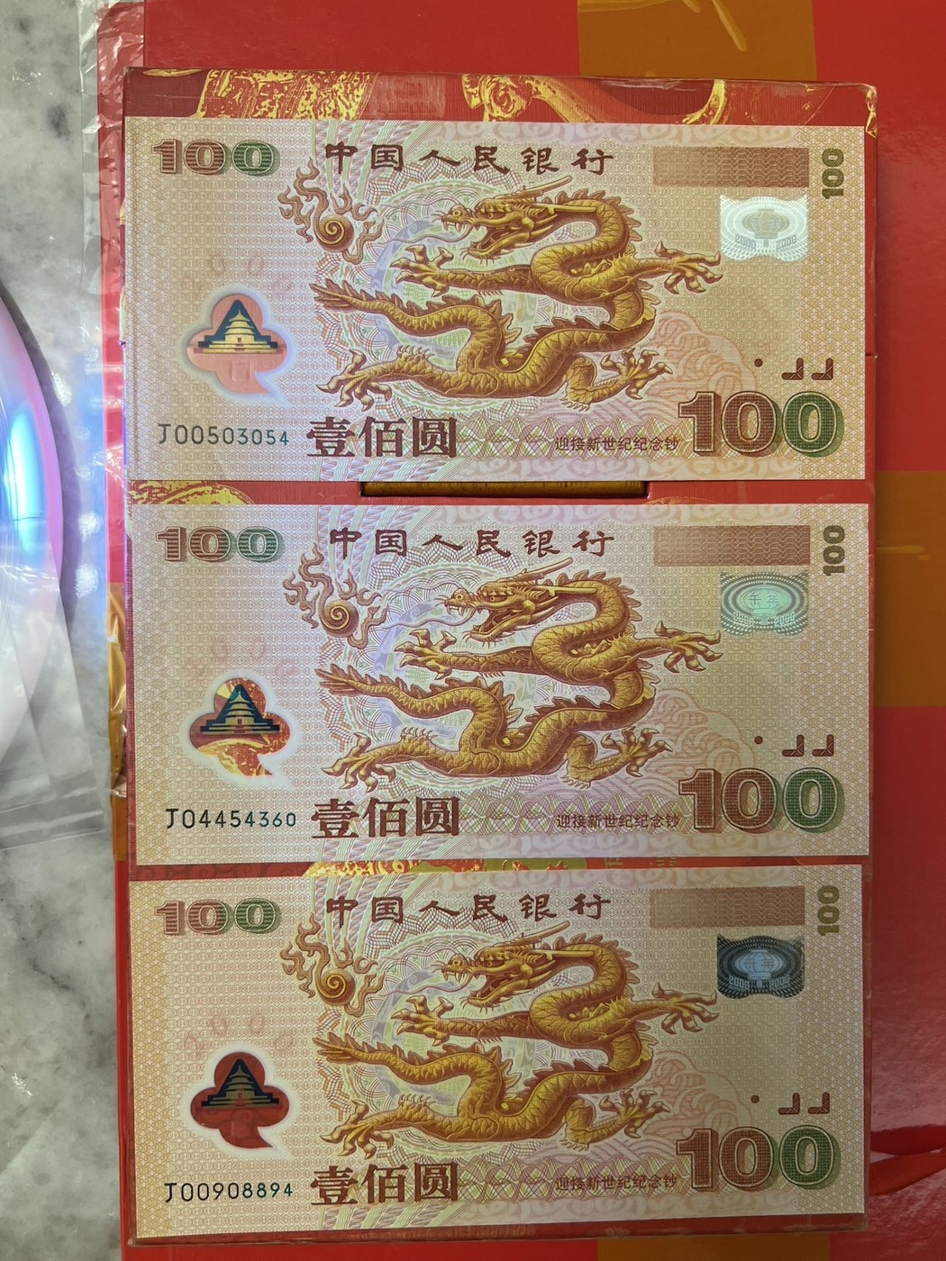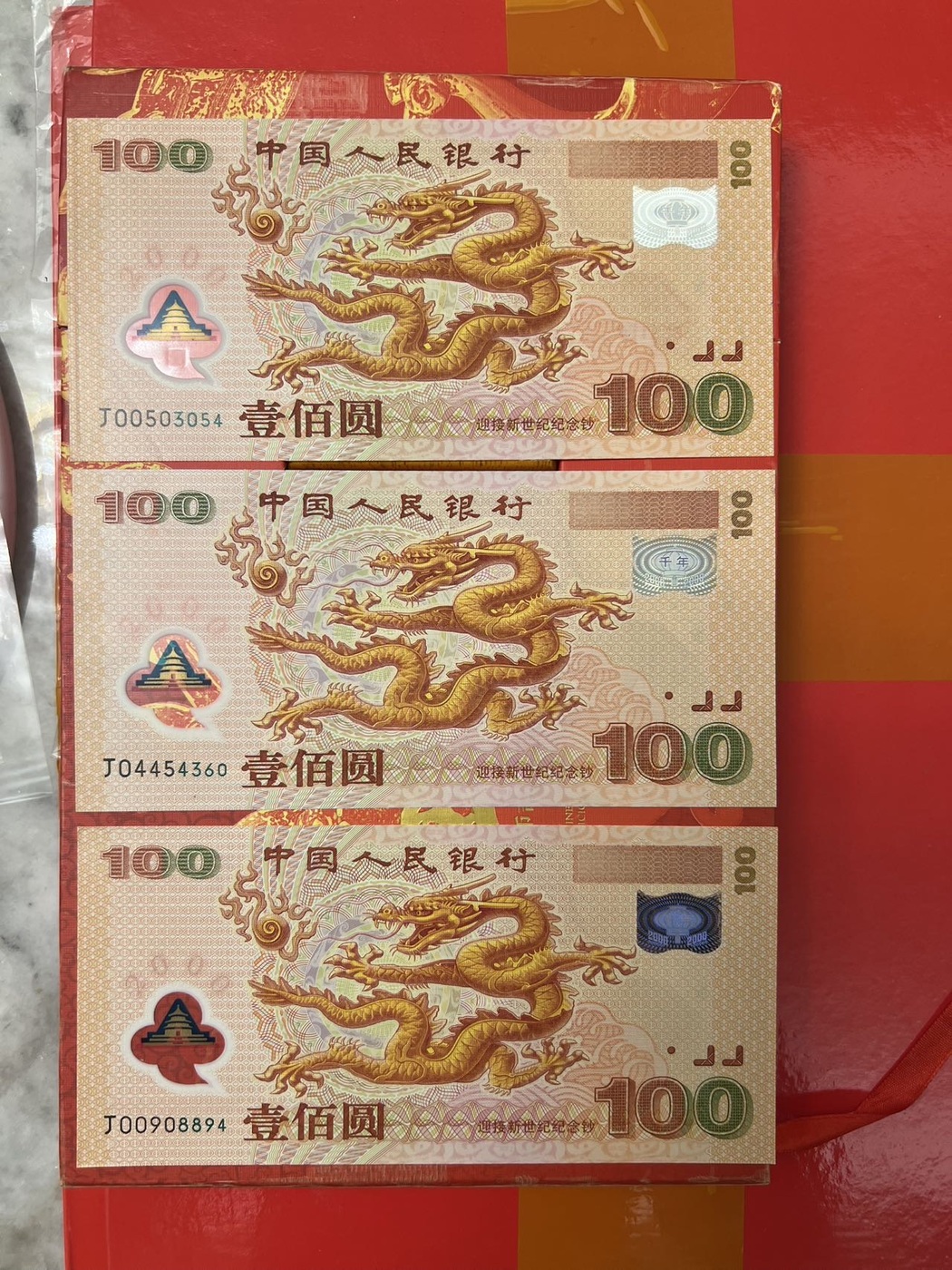 3张大龙钞 ,最上面这张正面左下角有软折,中间这张右边处有微小口,下面这张全新,都是原票品如图,一起出3088元