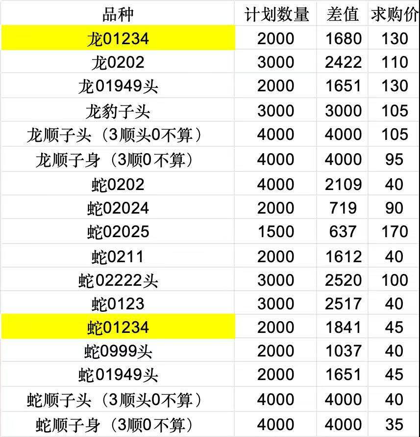 35起不挑号收蛇钞龙钞表格上品种