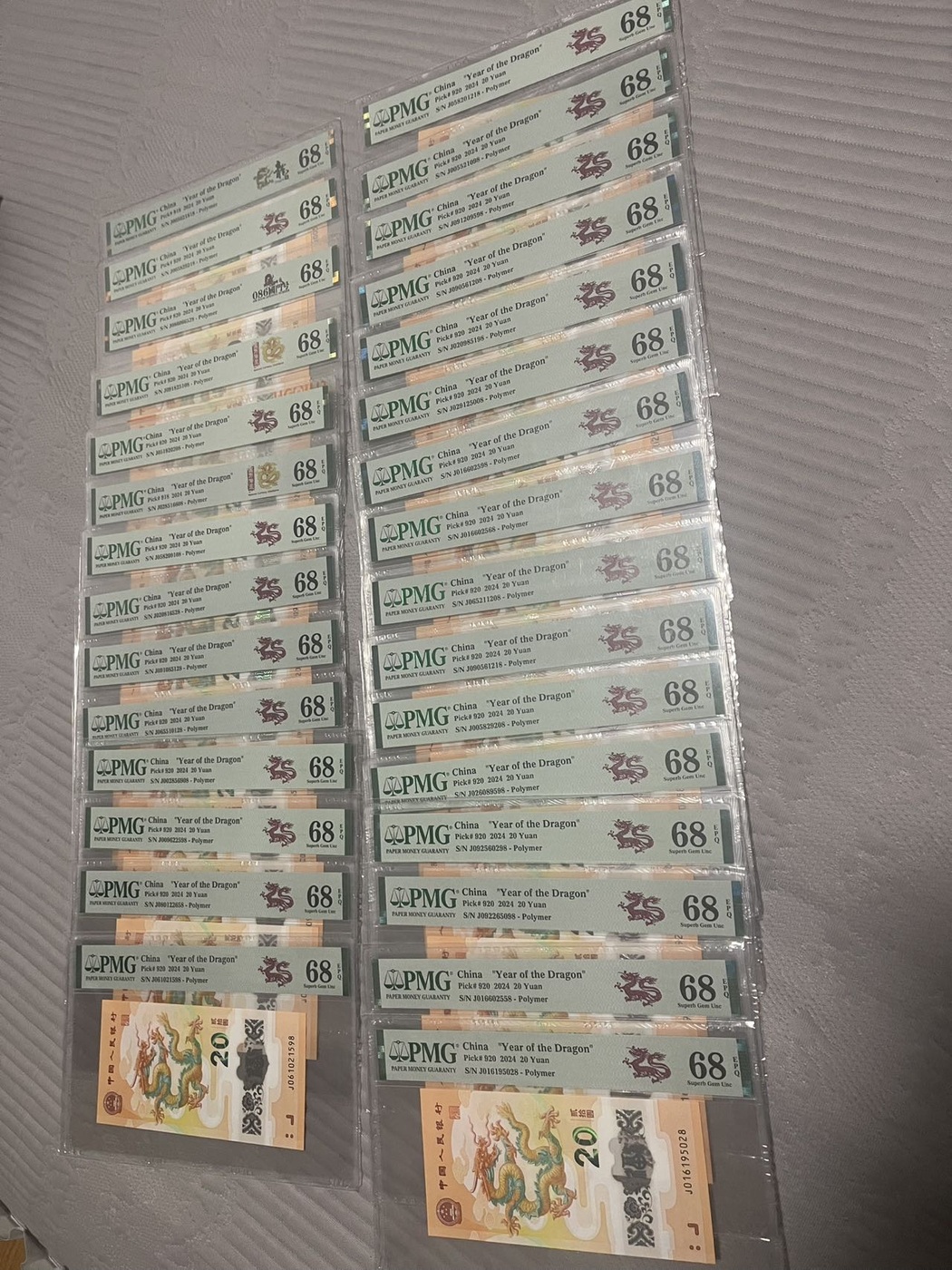出30张龙钞无347尾8,PMG68分,通走820元一张,不议价,要求一起走,非诚勿扰