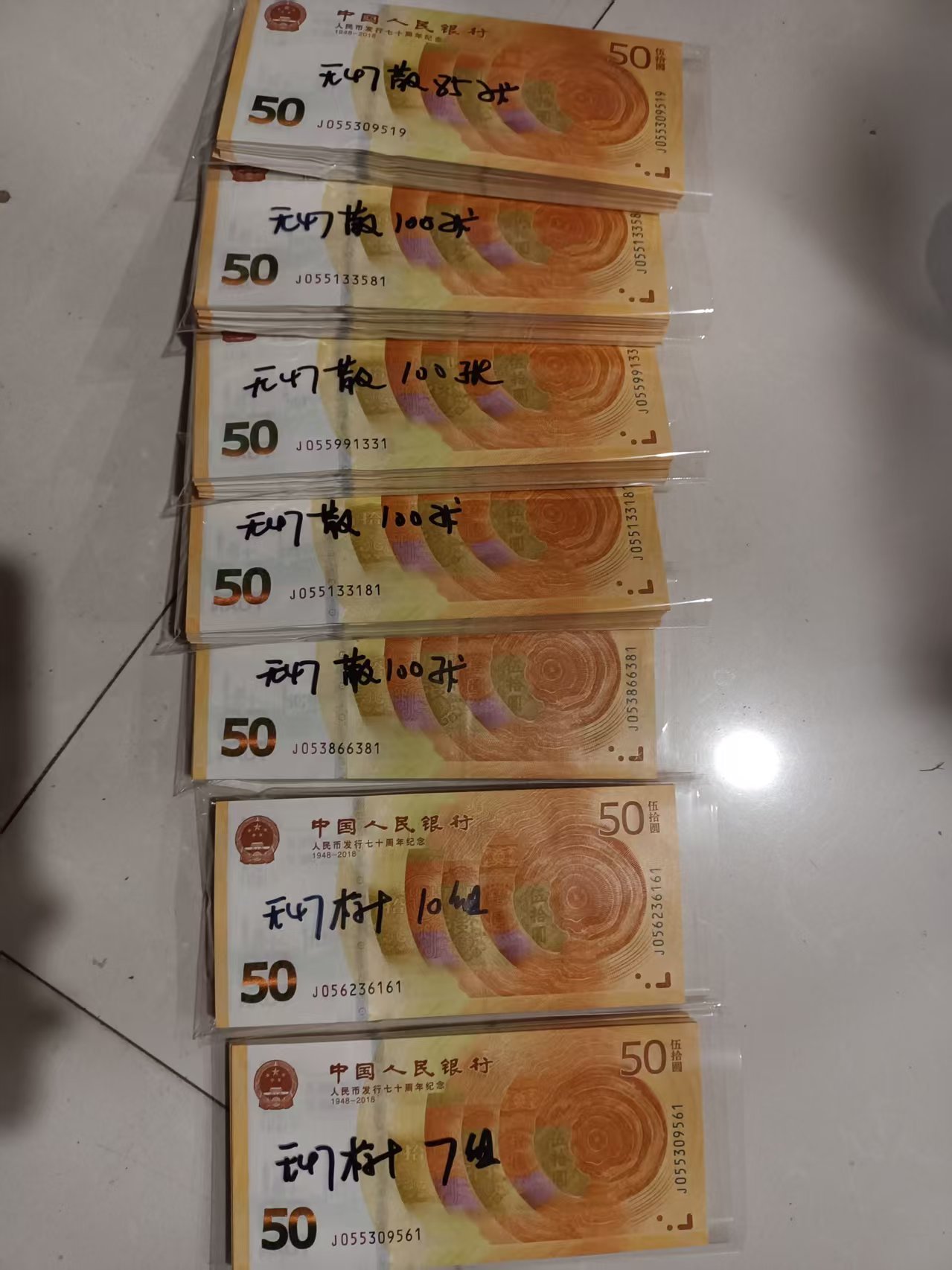 售70钞 无47标十17组 无47散485张